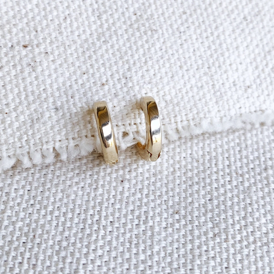 * Metal: 18k Gold filled * 9.0 mm diameter x 1.0 mm wide * Clicker type closure * Weight: 1 gram/pair * Hypoallergenic * Waterproof * Handcrafted in Brazil
