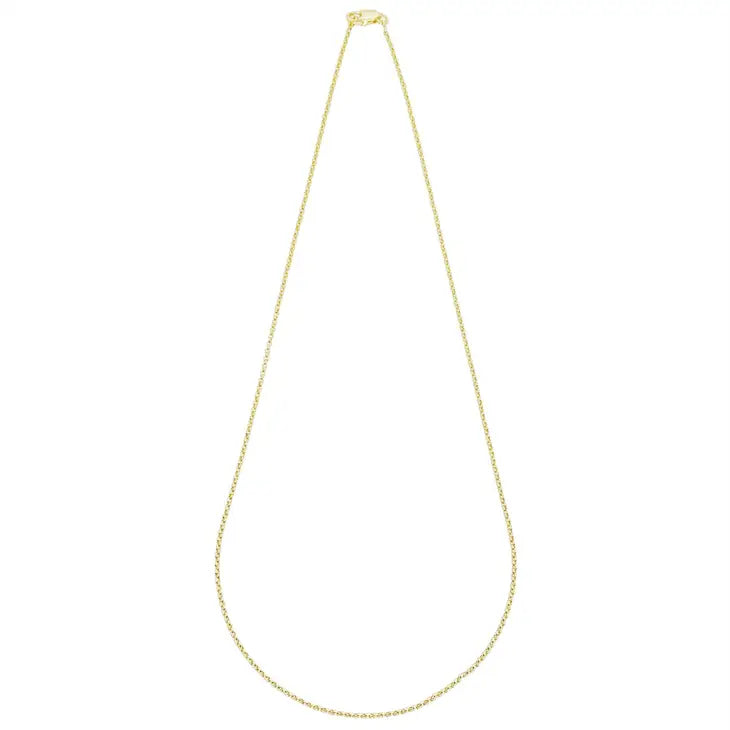 The 18k gold-filled 1.5mm thickness Rolo chain is a must for everyone looking to create unique pieces of jewelry and necklace layering. It fits very well with pendants and charms or even plain ones.