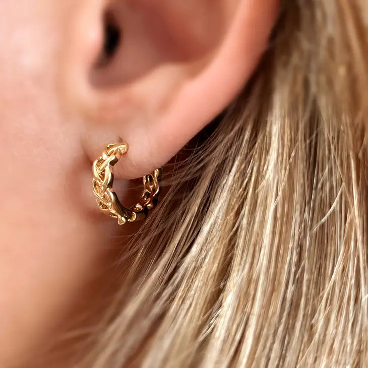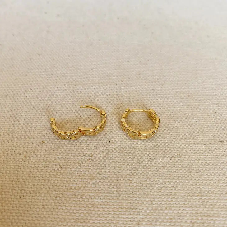* Metal: 18k Gold filled * 15 mm diameter x 3 mm wide * Clicker type closure * Weight: 2.1 gram/pair * Hypoallergenic * Waterproof * Handcrafted in Brazil