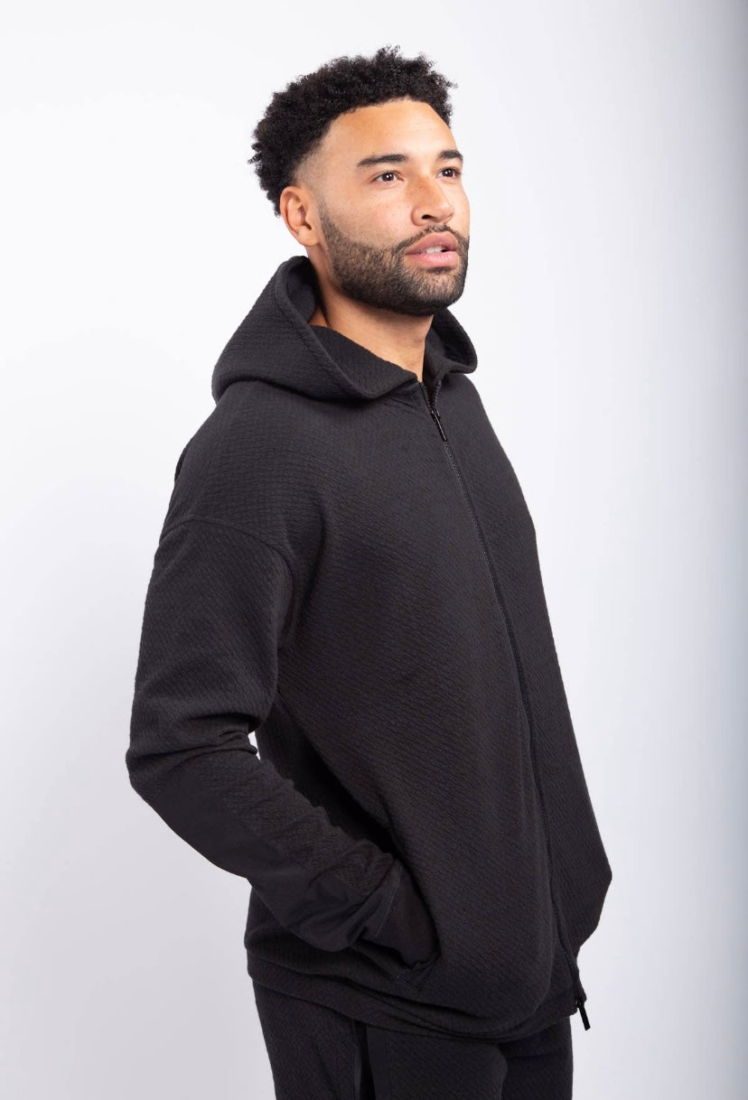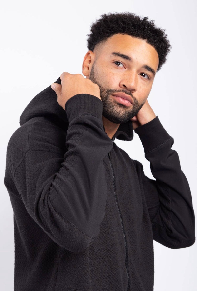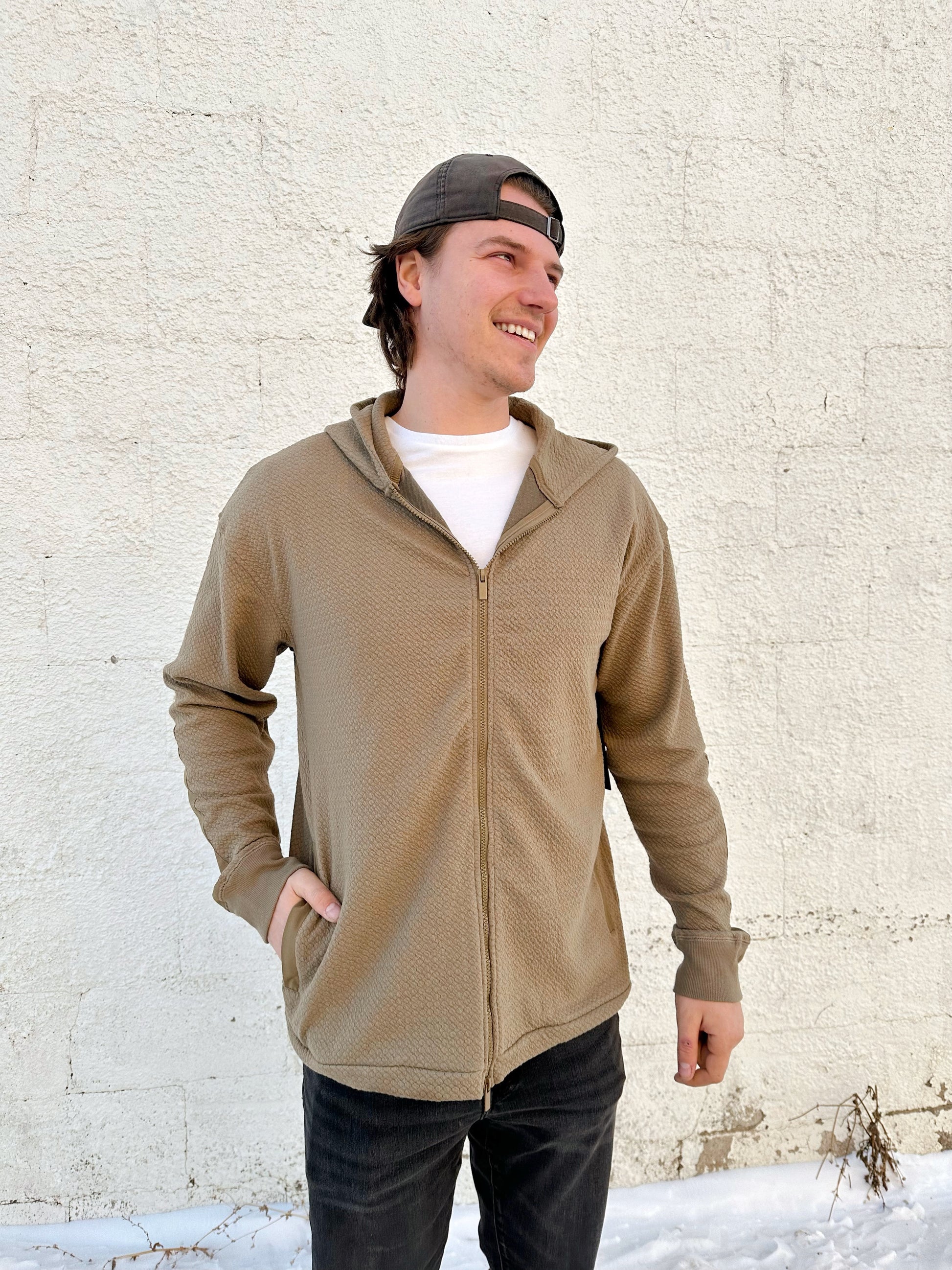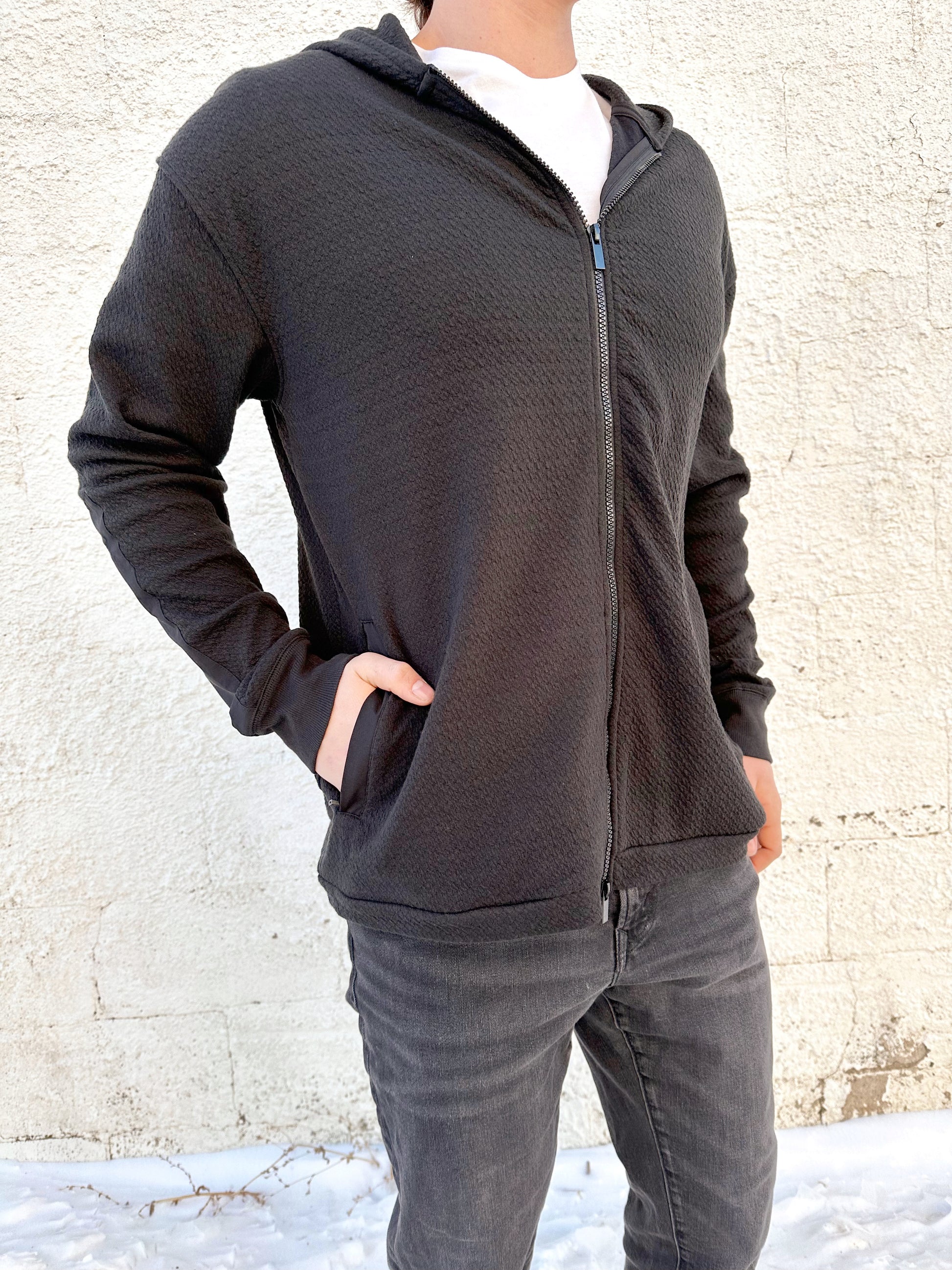 This mineral wash long sleeve waffle knit hoodie top is just the right amount of form fit. You are still able to move comfortably and with complete ease.