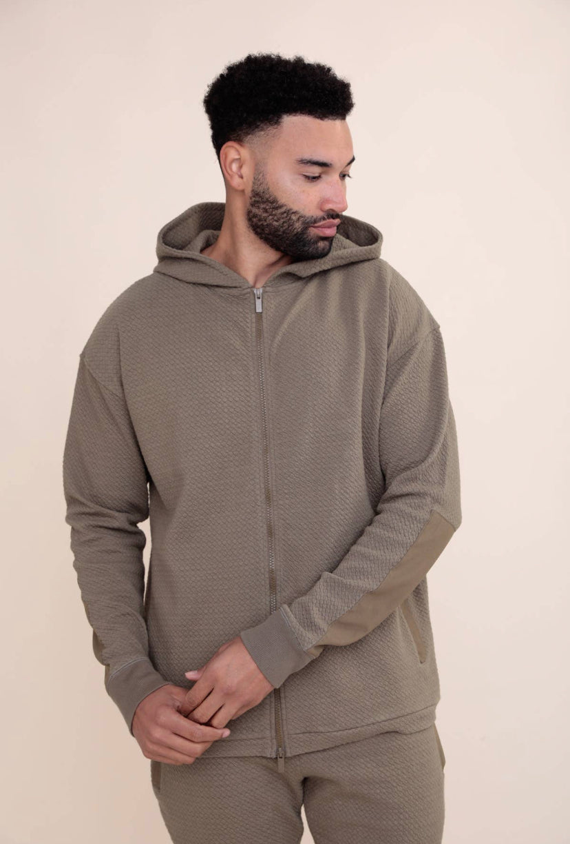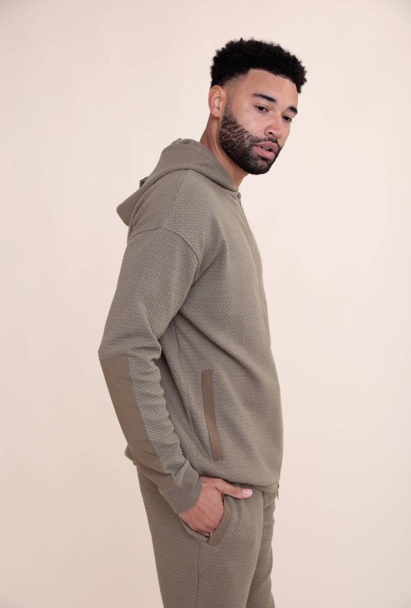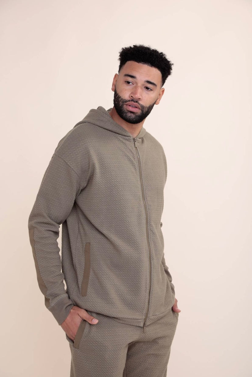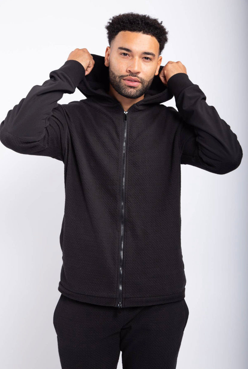 This mineral wash long sleeve waffle knit hoodie top is just the right amount of form fit. You are still able to move comfortably and with complete ease.