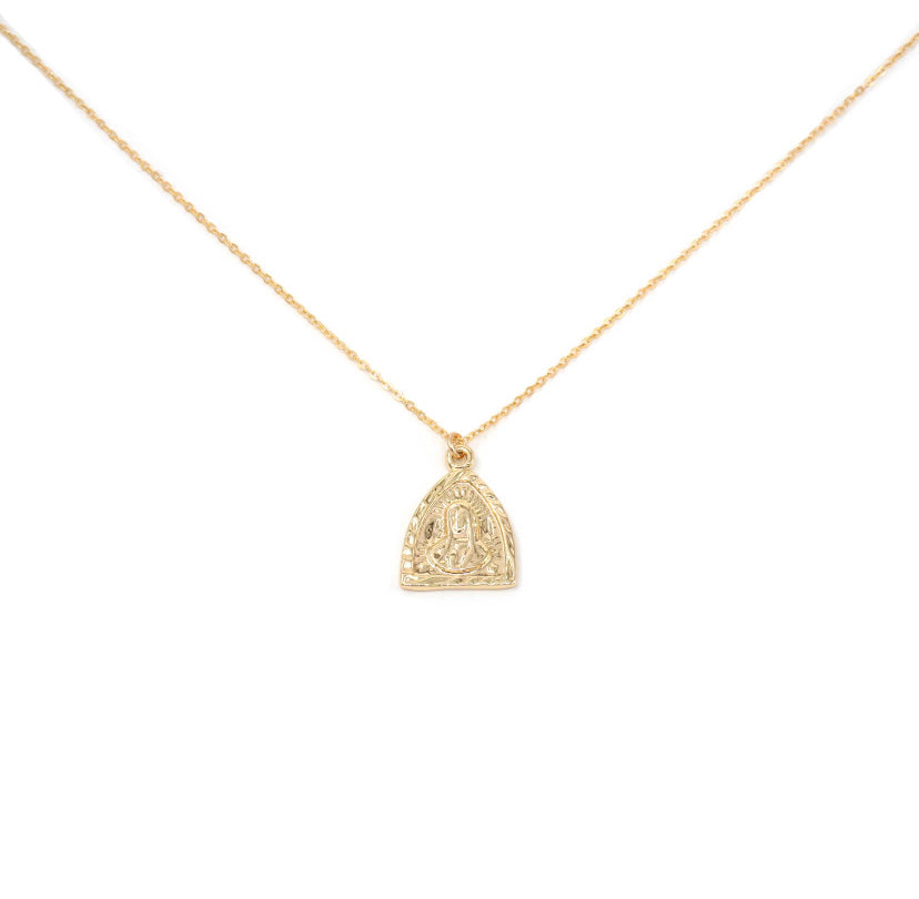 Charm: .75" gold filled triangle shaped Virgin Mary coin
