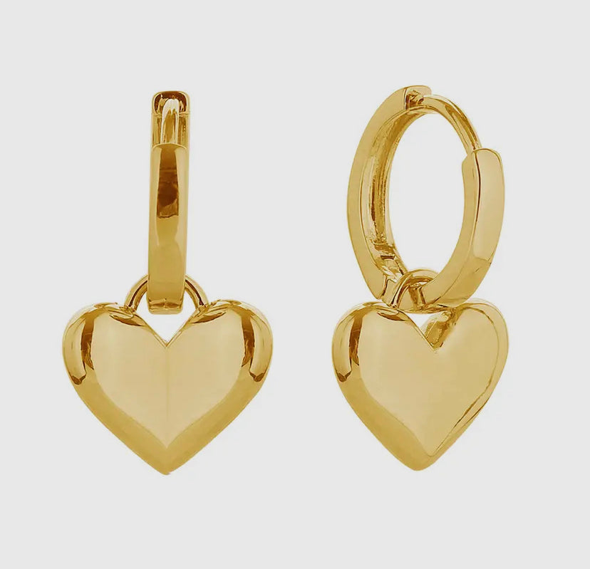 14K Gold-Dipped Heart Drop Hoop Huggie Earrings