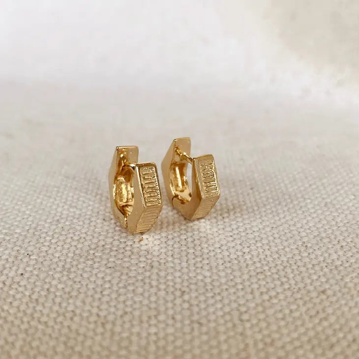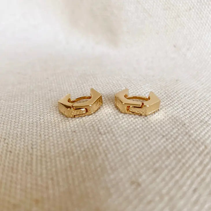 18K Gold Filled Textured Shaped Clicker Hoop Earrings