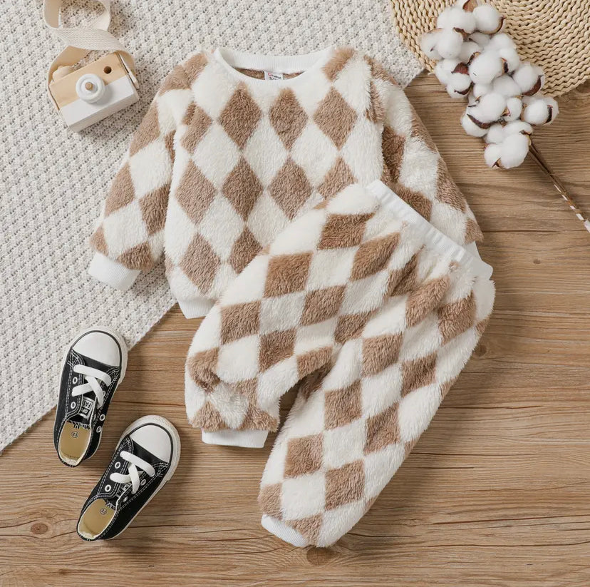 Fuzzy Grid Sweatsuit Set