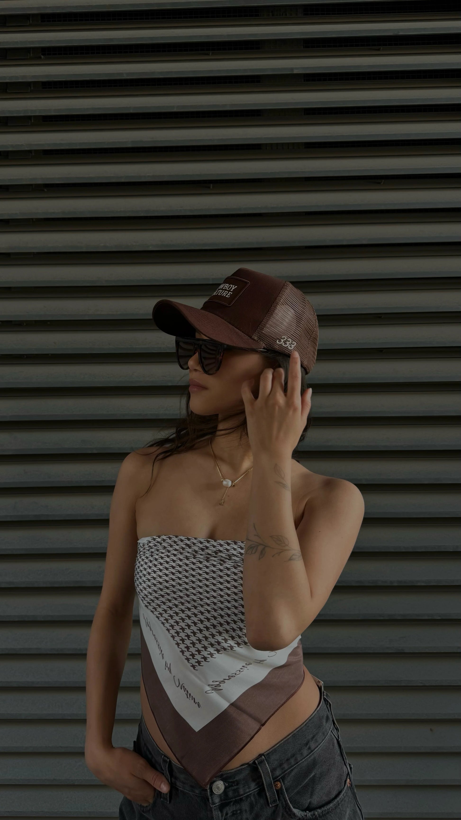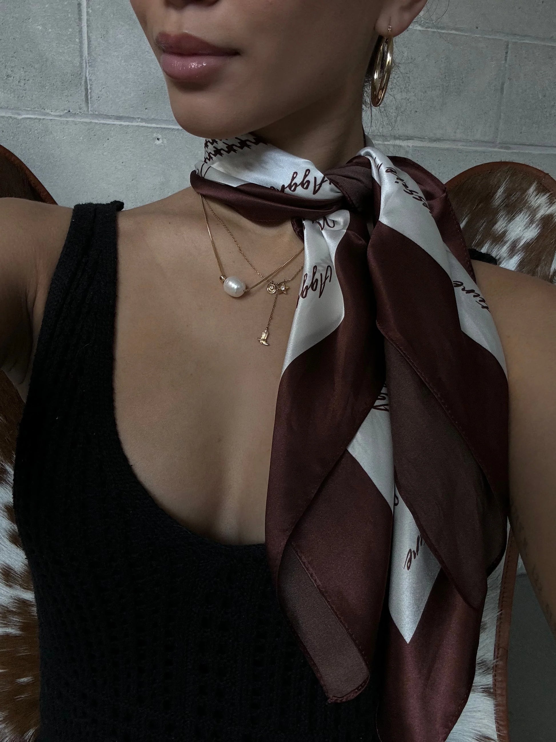 A bold statement piece rooted in western grit and timeless style. Crafted from smooth silk for a soft, premium feel, this 26” x 26” bandana blends classic rodeo heritage with a modern edge. Featuring an all-over houndstooth-inspired pattern and bordered with the Aggressive by Nature script, it’s designed to stand out whether worn around the neck, tied on a bag, or styled as a headpiece.