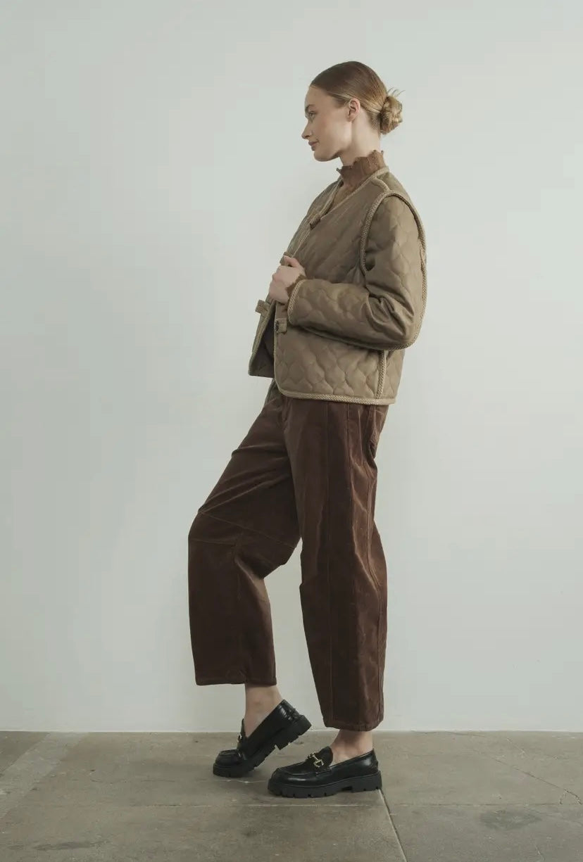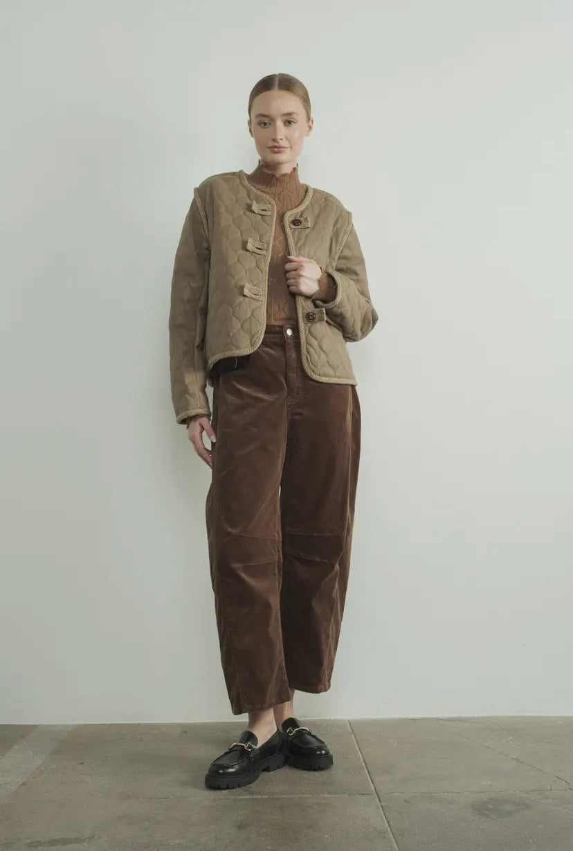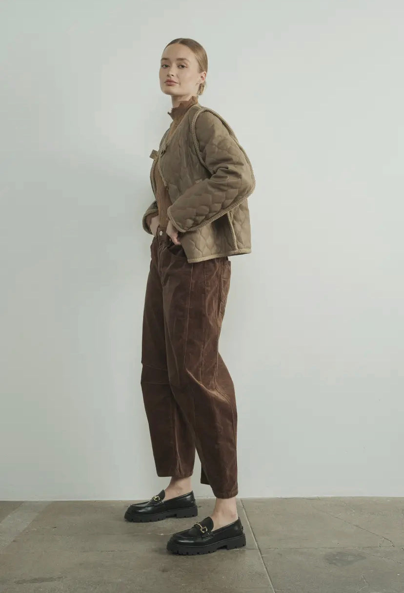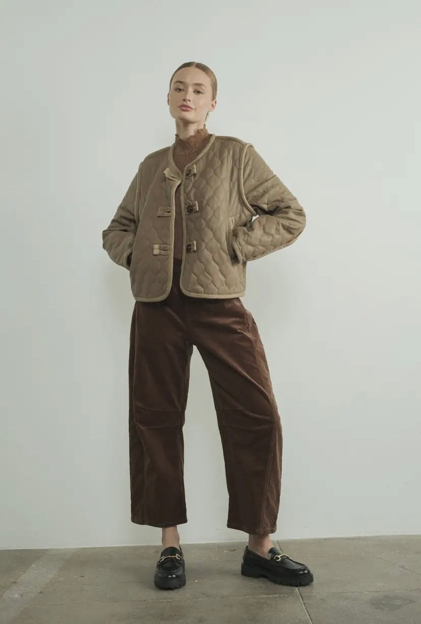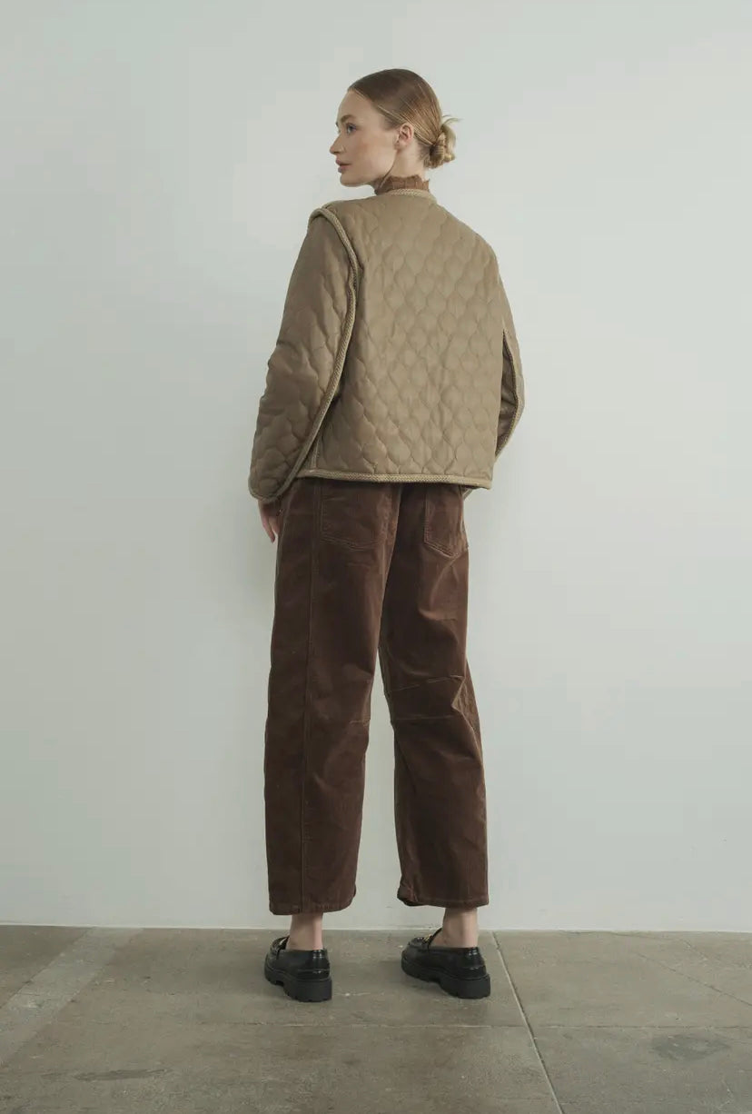 Agency Faux Leather Quilted Button Down Coat | Mushroom
