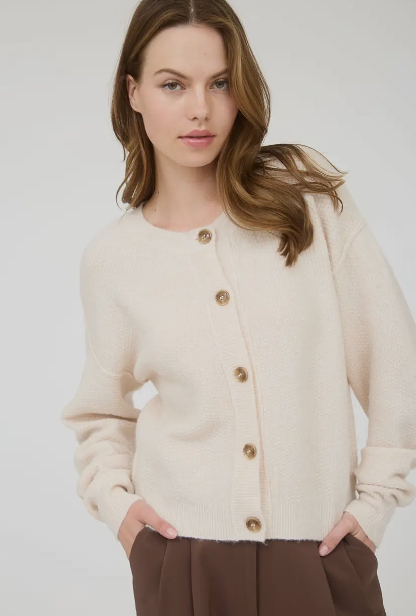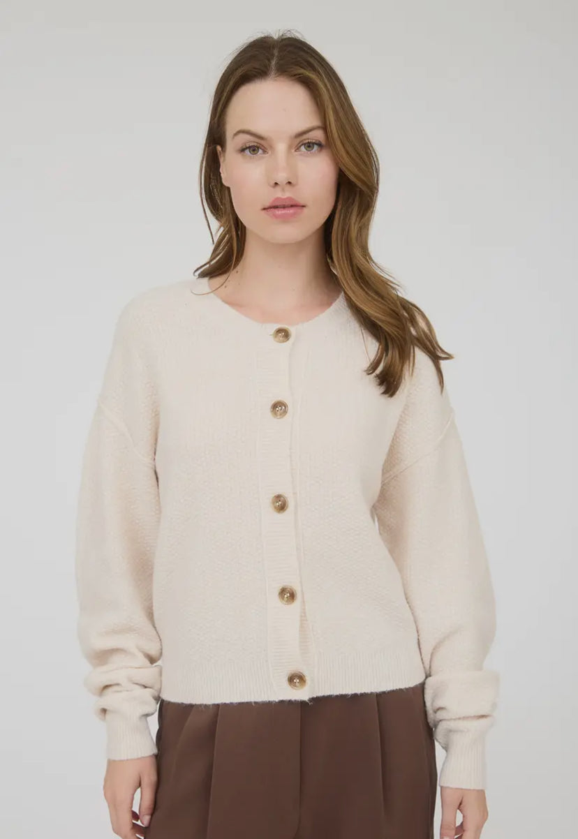 Wool blend 65% Recycled Polyester 13% Acrylic 13% Nylon 6% Wool 3%Spandex