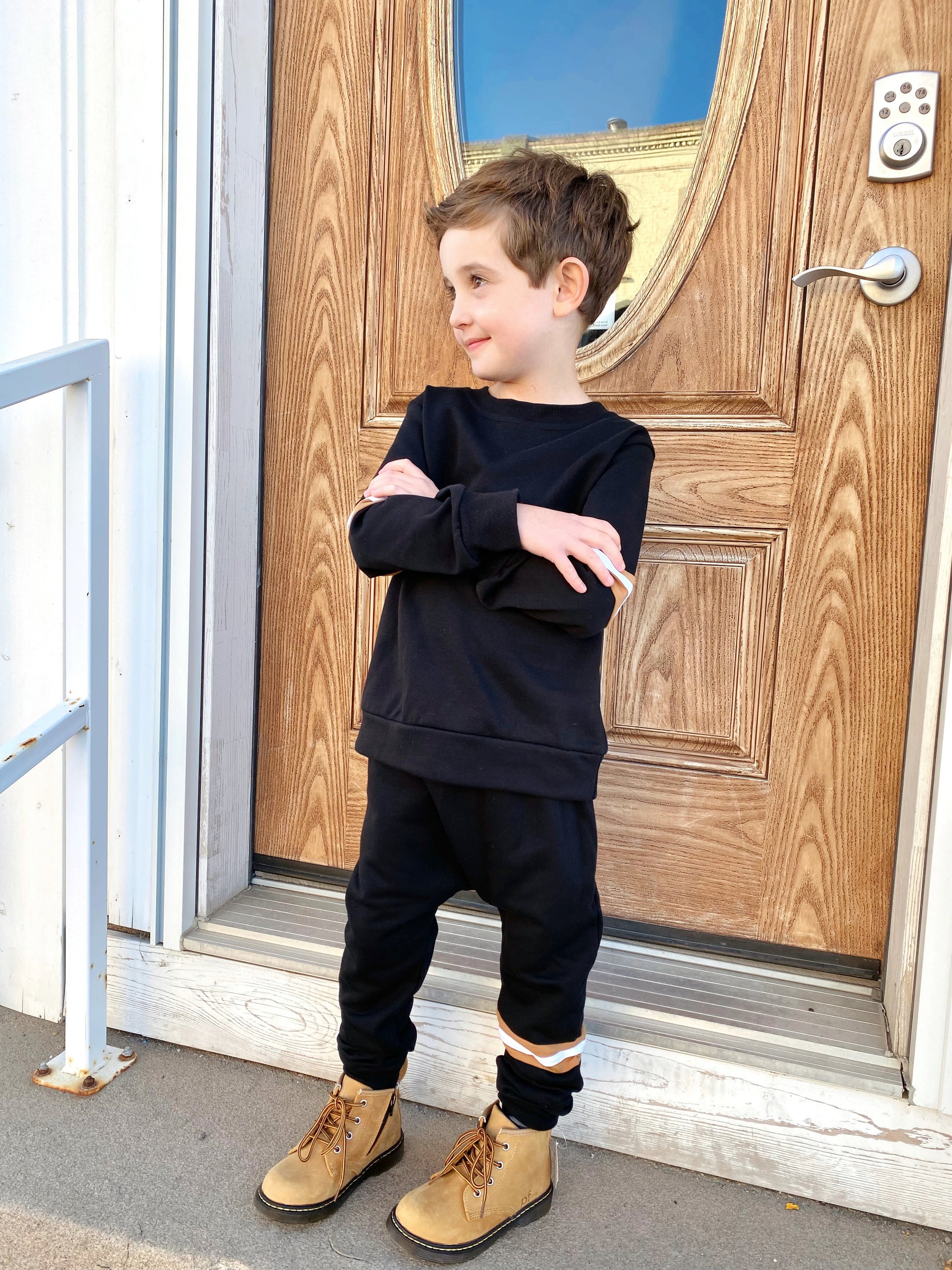 Our Atkins Jogger Set is a hip sweatsuit with banding accents on the sleeves and leg. Your little one will be looking extra fresh in this cute two piece jogger. Material: 85%