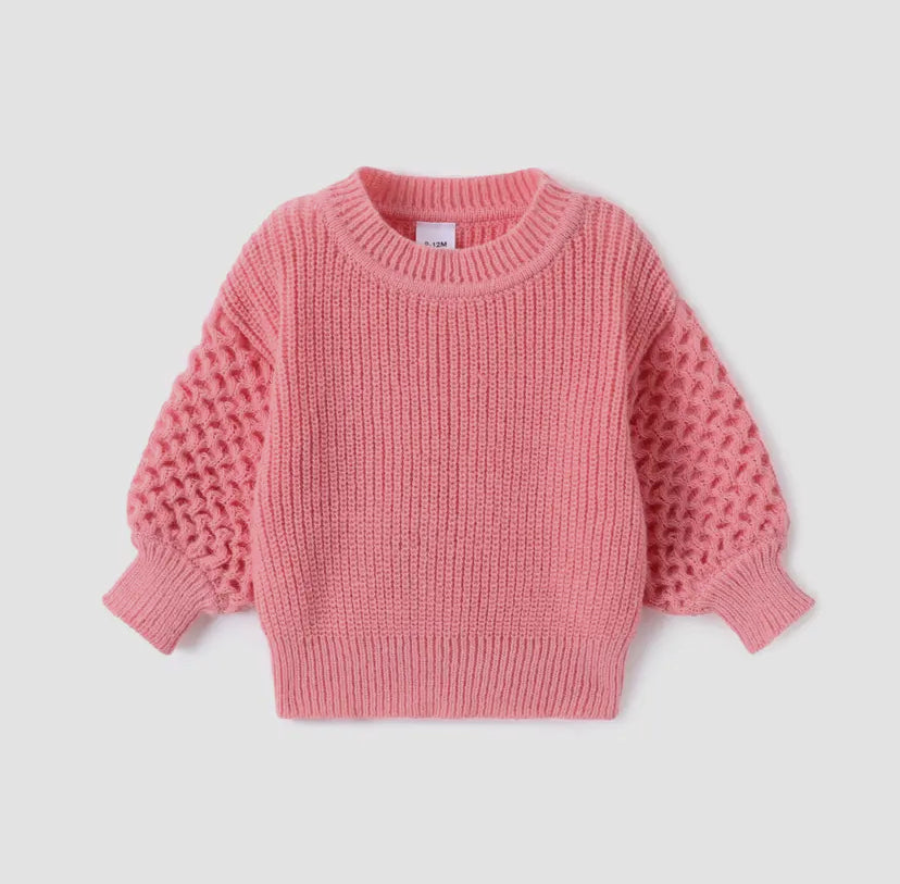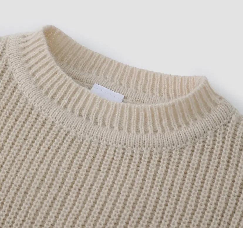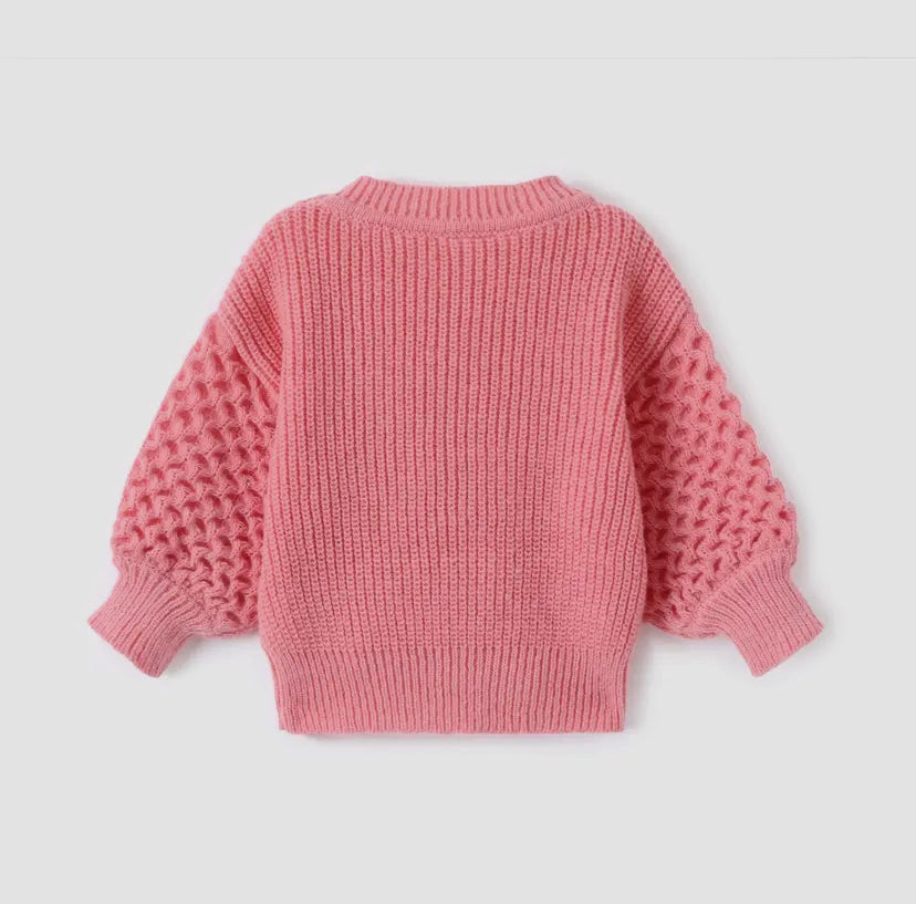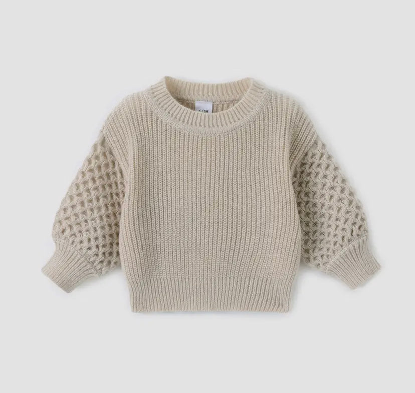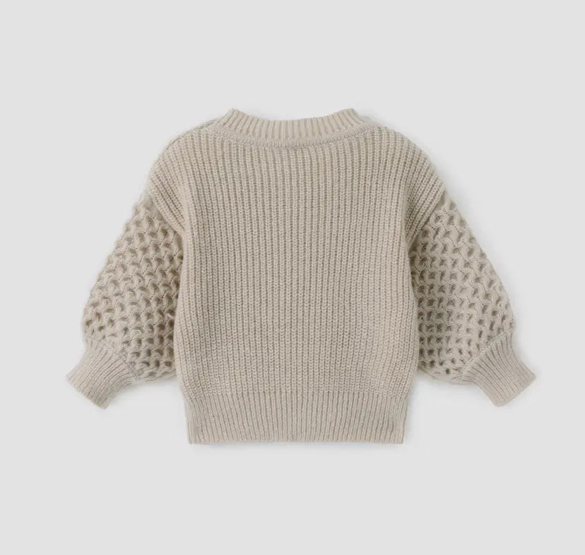 Soft and cozy, our kids' sweater with textured sleeves is perfect for fall outings