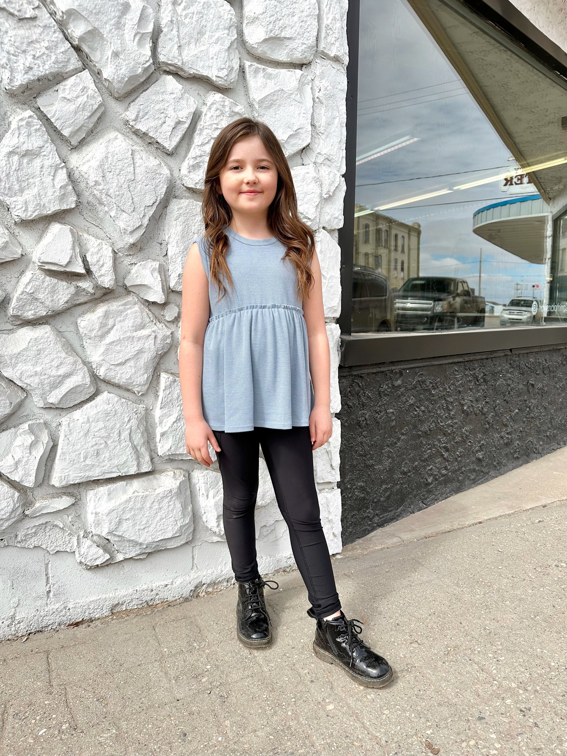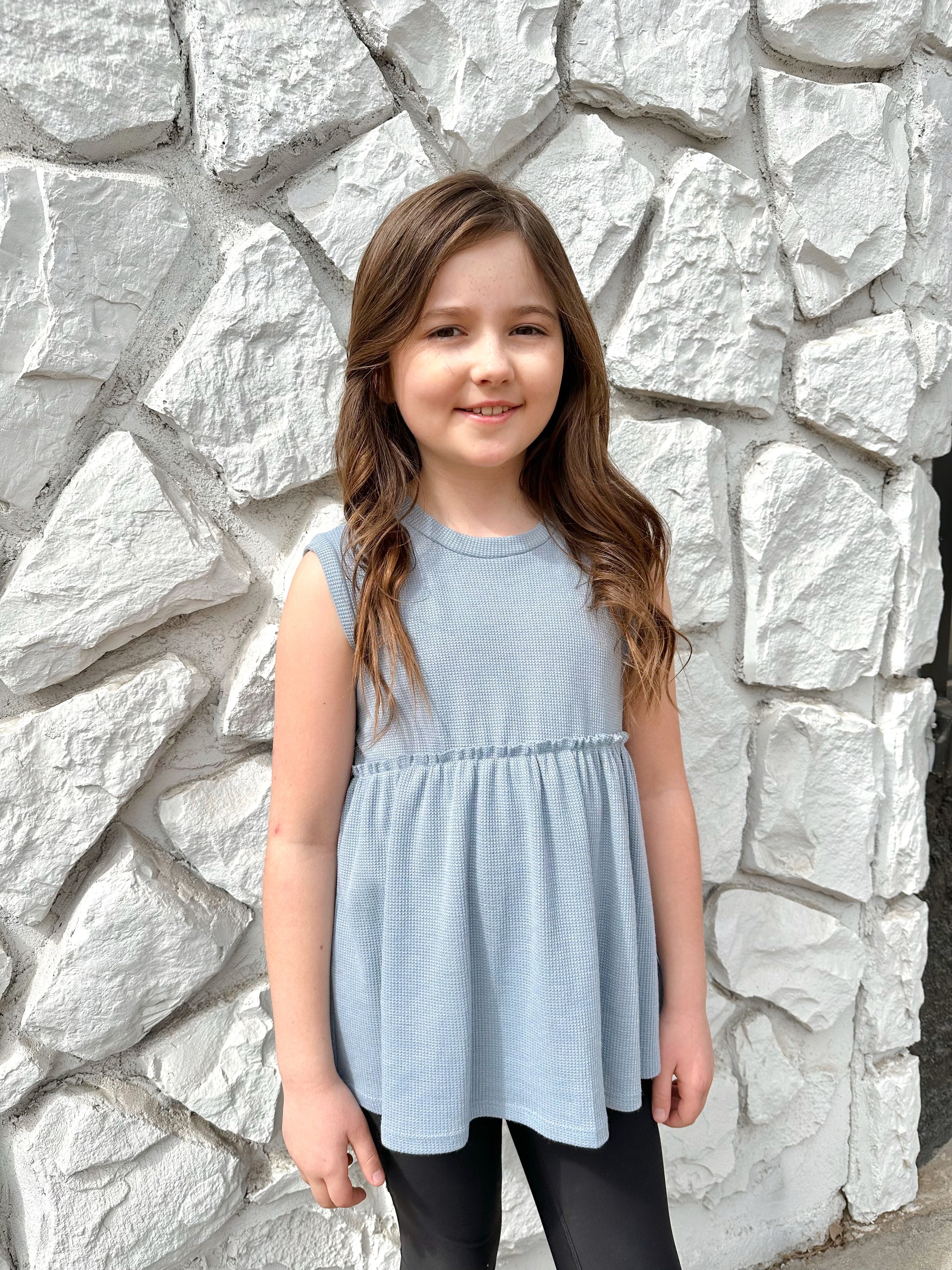 KIDS SLEEVELESS BABYDOLL THERMAL KNIT TOP - Round neck - Sleeveless - Peplum hem - Soft thermal knit fabric