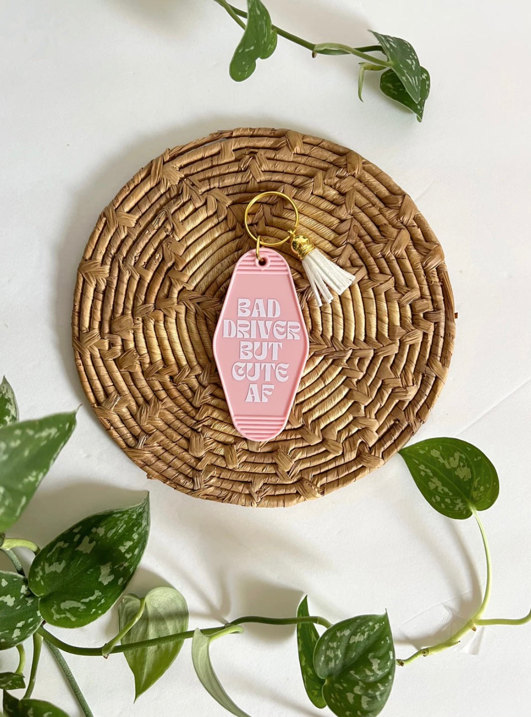 This keychain is the perfect accessory for your keys. This retro-style motel keychain features the phrase "Bad Driver". It's a simple, stylish accessory that adds a touch of fun to any set of keys!