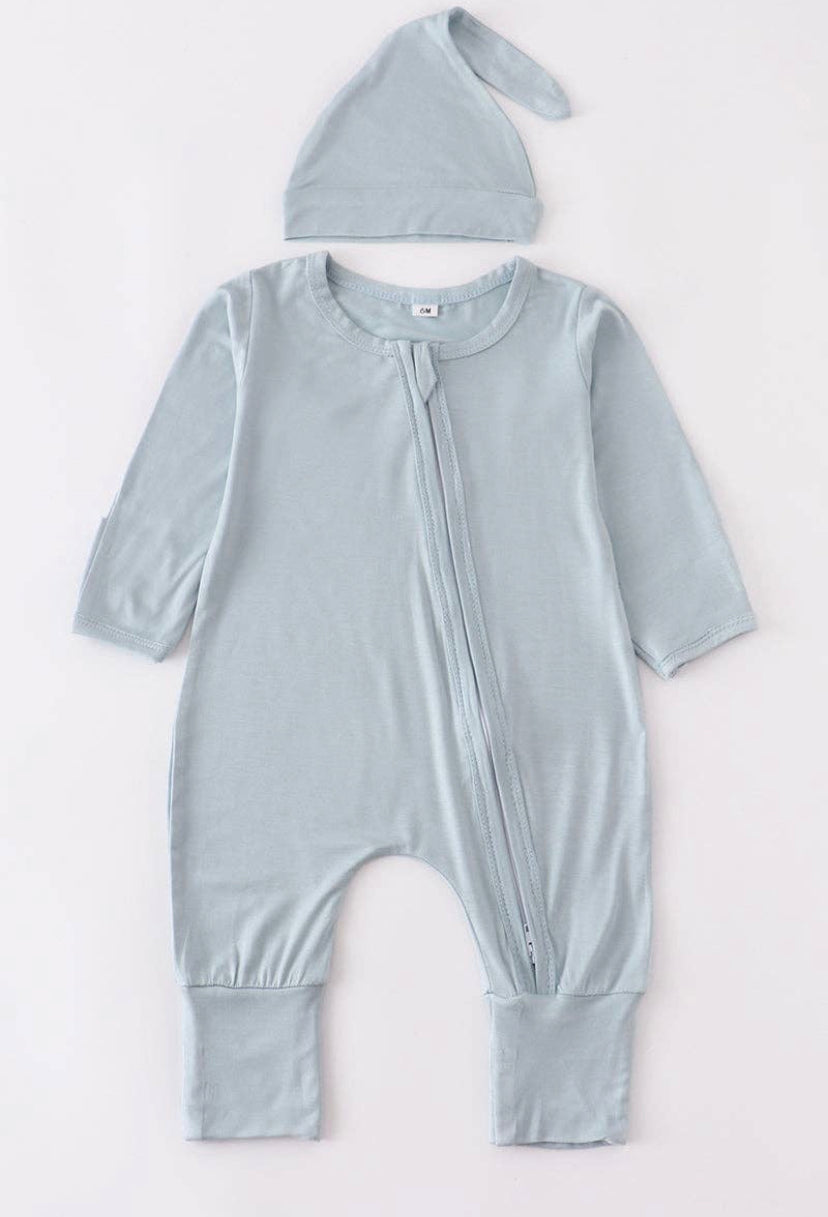 Bamboo Zipper Onesie - Baby Blue *beanie not included