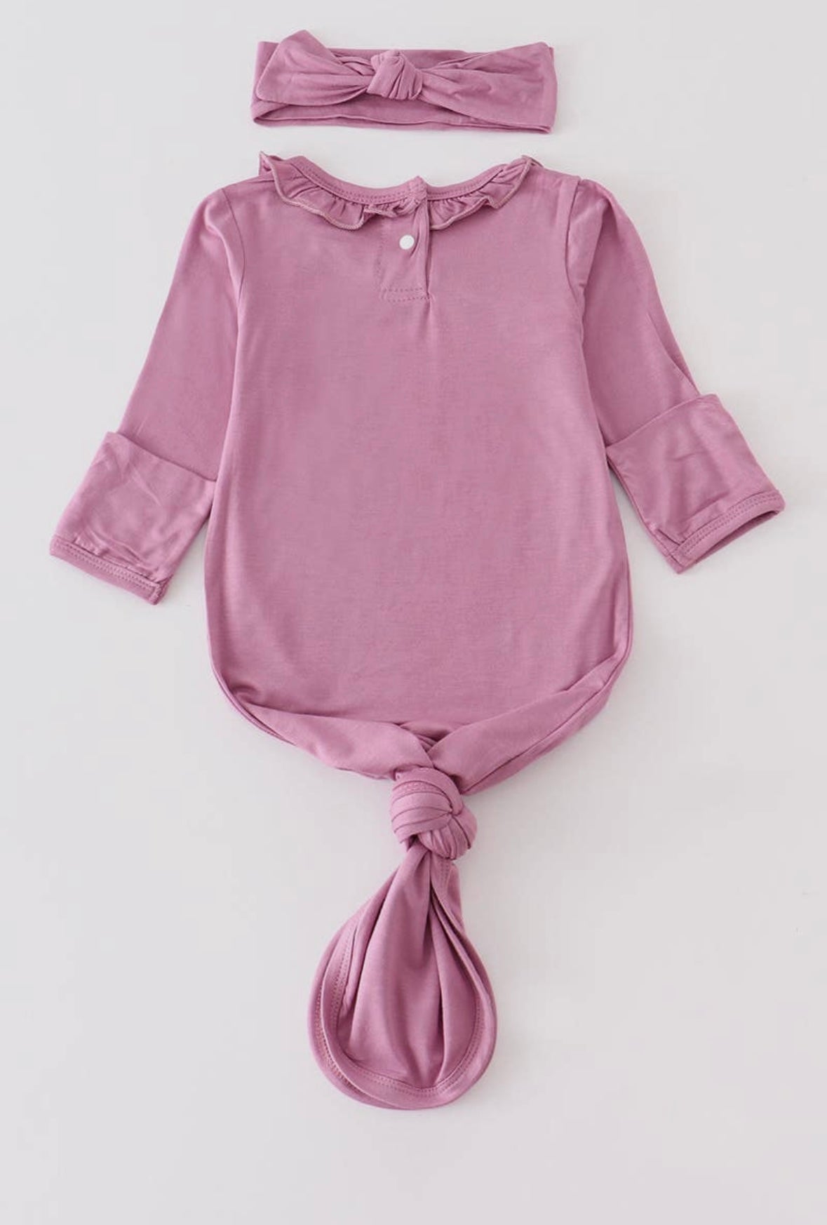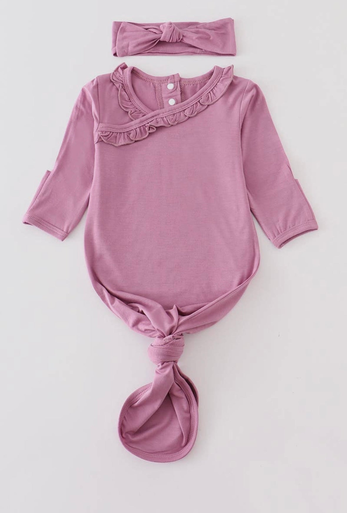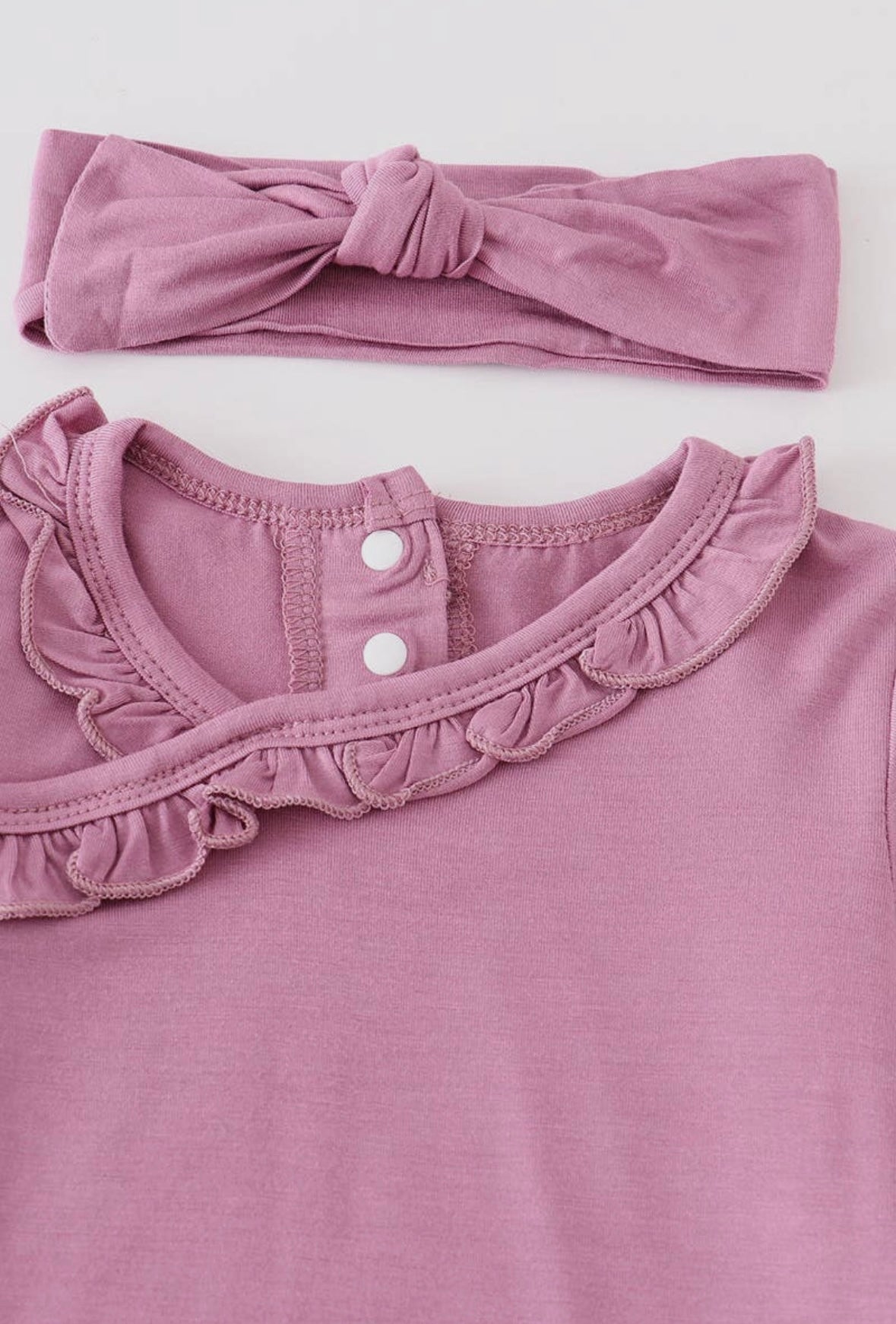 Introducing the oh-so-adorable Lilac Bamboo Ruffle Baby Gown! So soft, it'll have your little one dreaming of sunsets in a field of wildflowers. With all the cuteness of springtime, why bother Even with the chill in the air? Your bundle of joy will be lookin' fly no matter the season!
