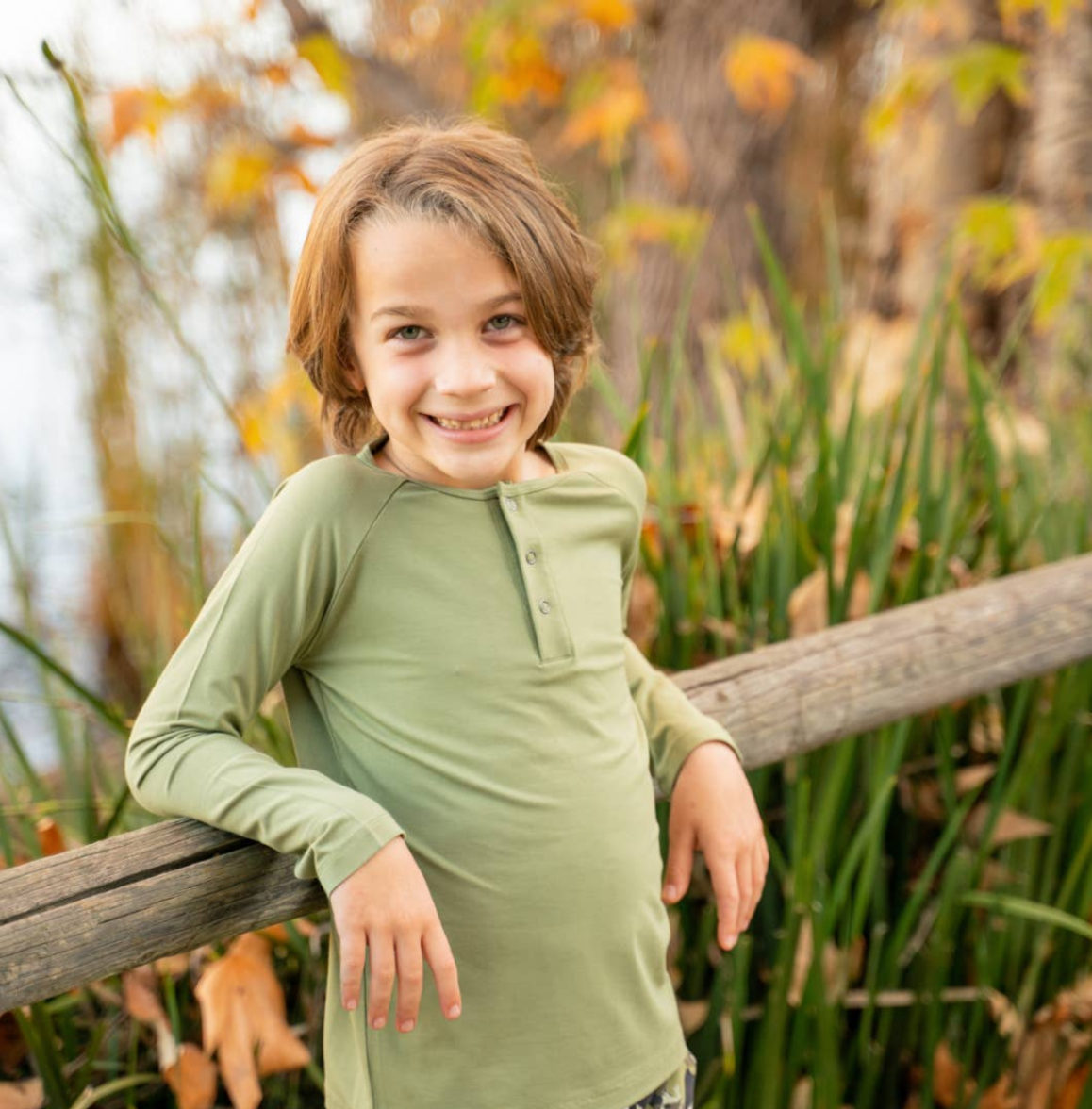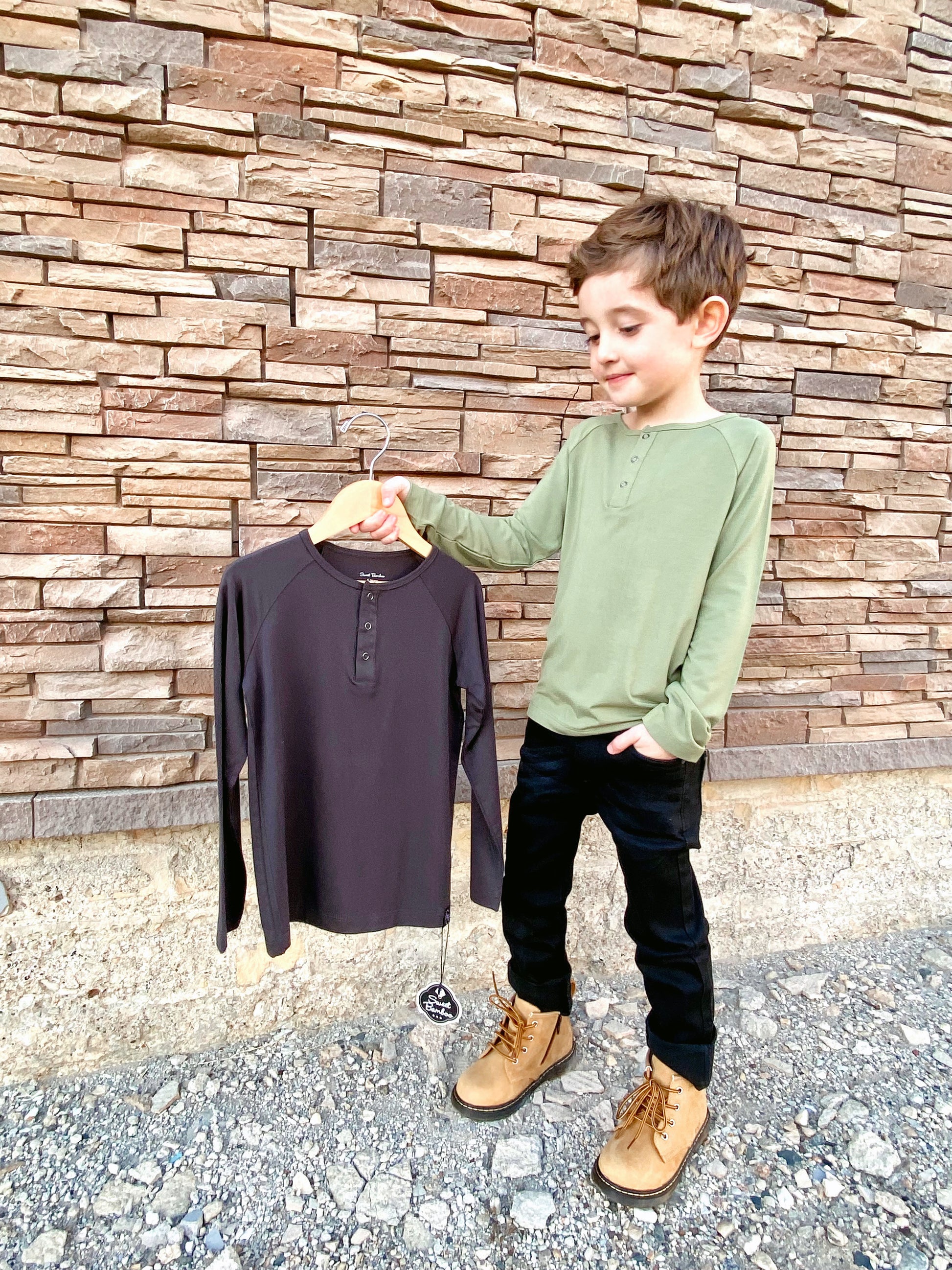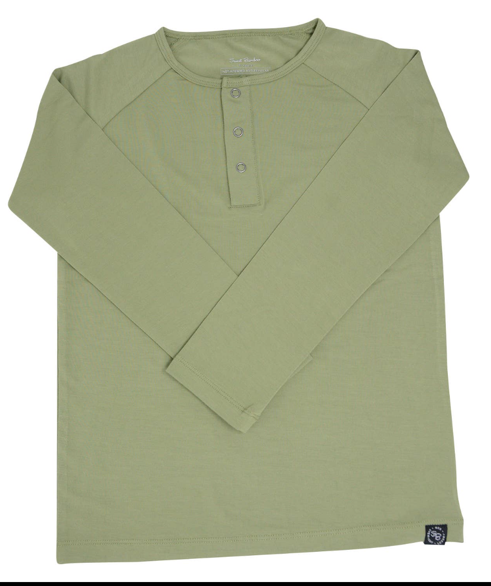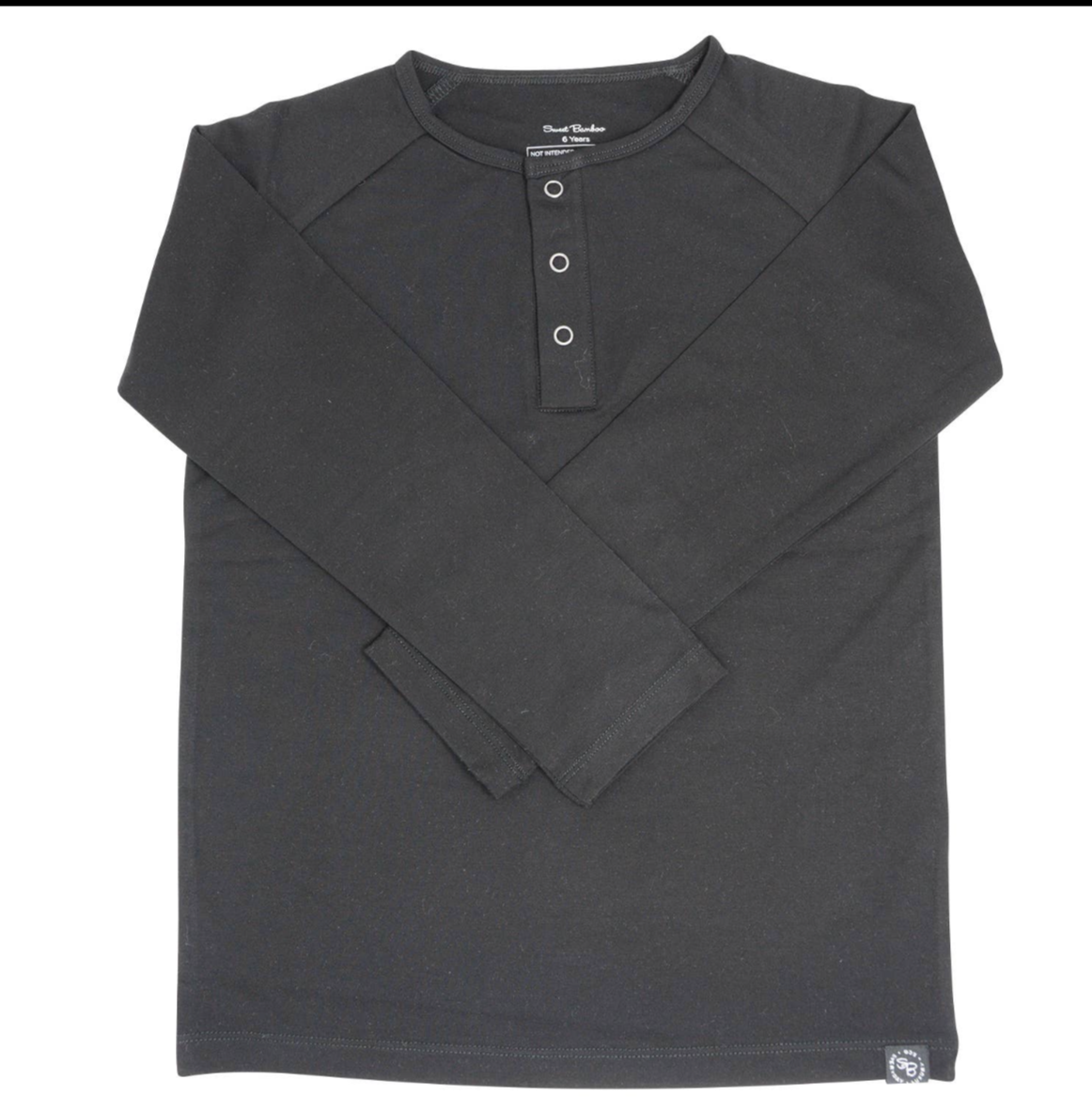 A long sleeve top with a deep front placket, finished with our gun metal snaps.