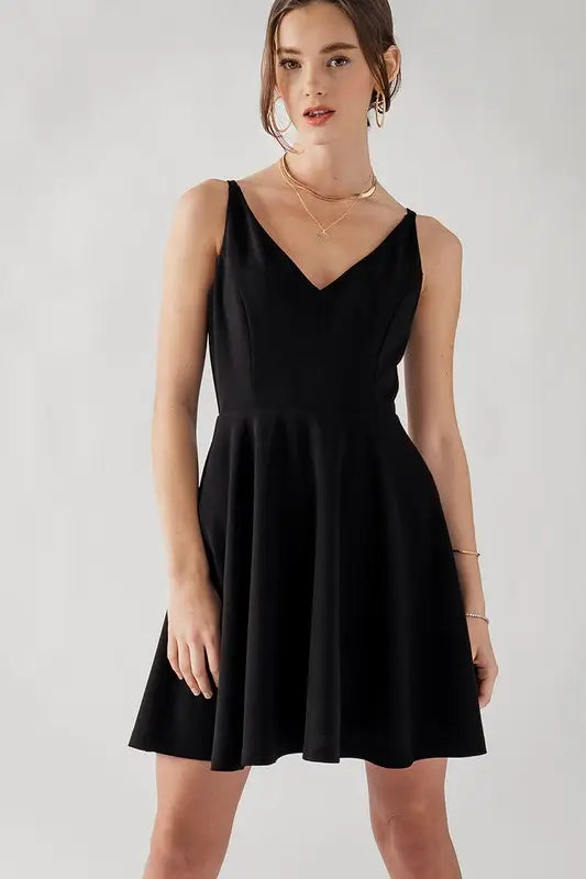 Sleeveless V Neck Front & Back with Back Zipper Dress