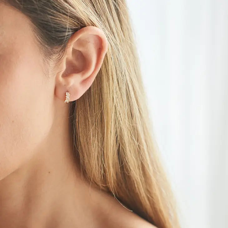 The Bronte Sleepers are a huggie style featuring swarovski crystal. Perfect to layer with hoops or other sleepers.