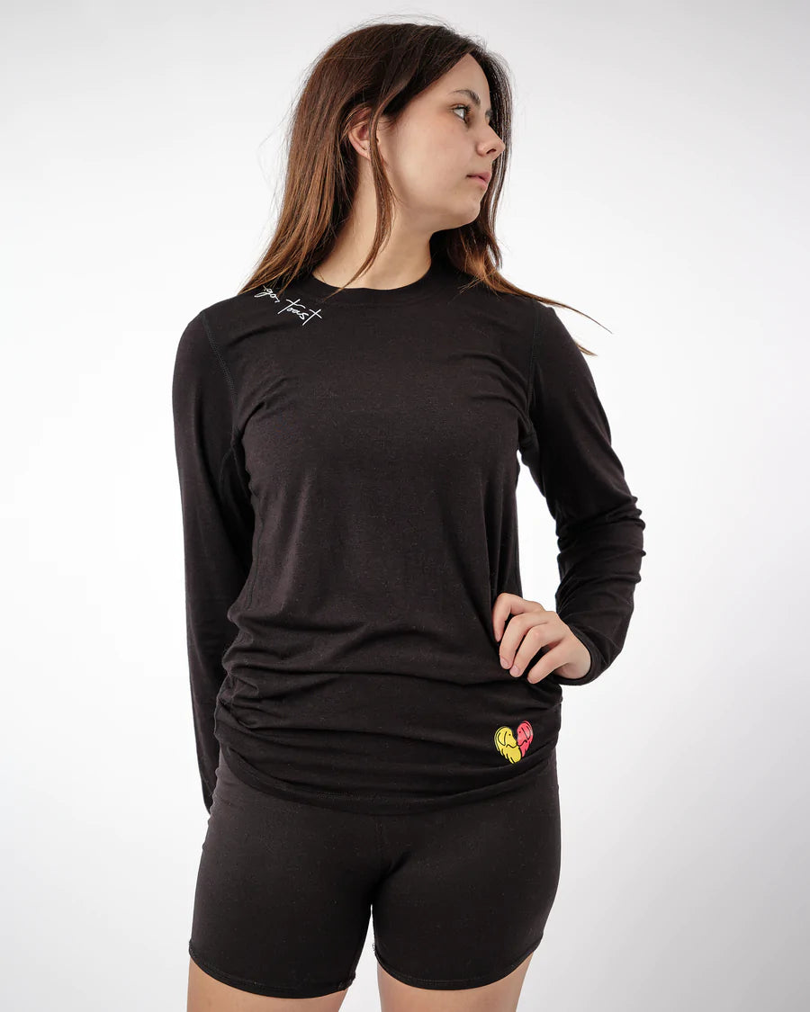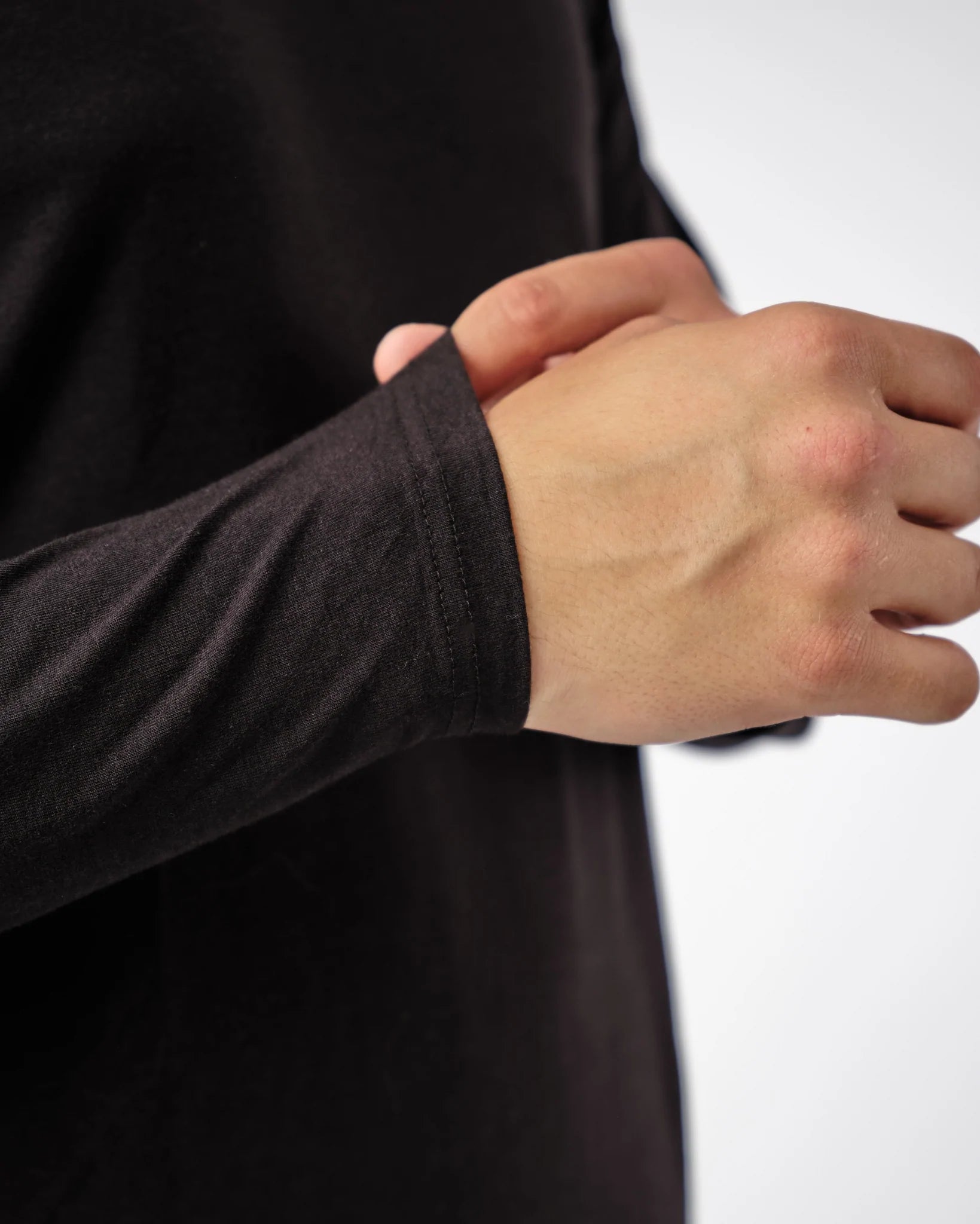 This buttery soft men’s long sleeve is a great looking item. Geared towards fuller frames and athletic builds with wider sleeves and lots of stretch. Wear this shirt to the gym or out and about without worrying about getting too warm.