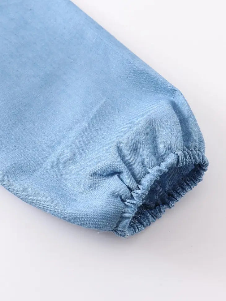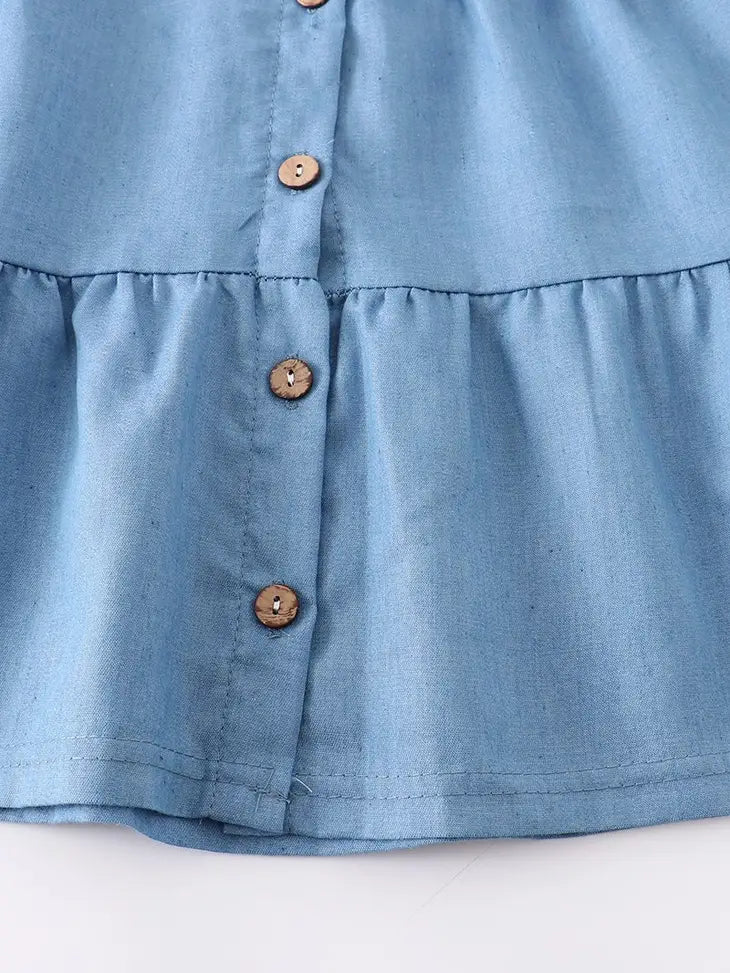 Light blue button down ruffle dress