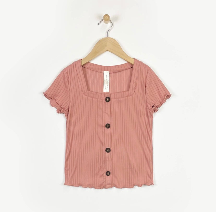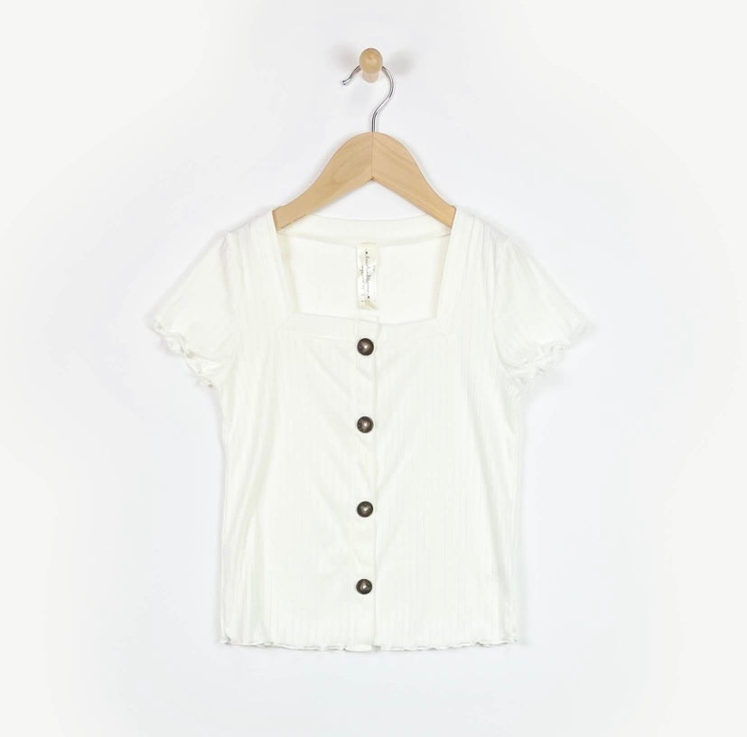 Square neck lettuce edge button down