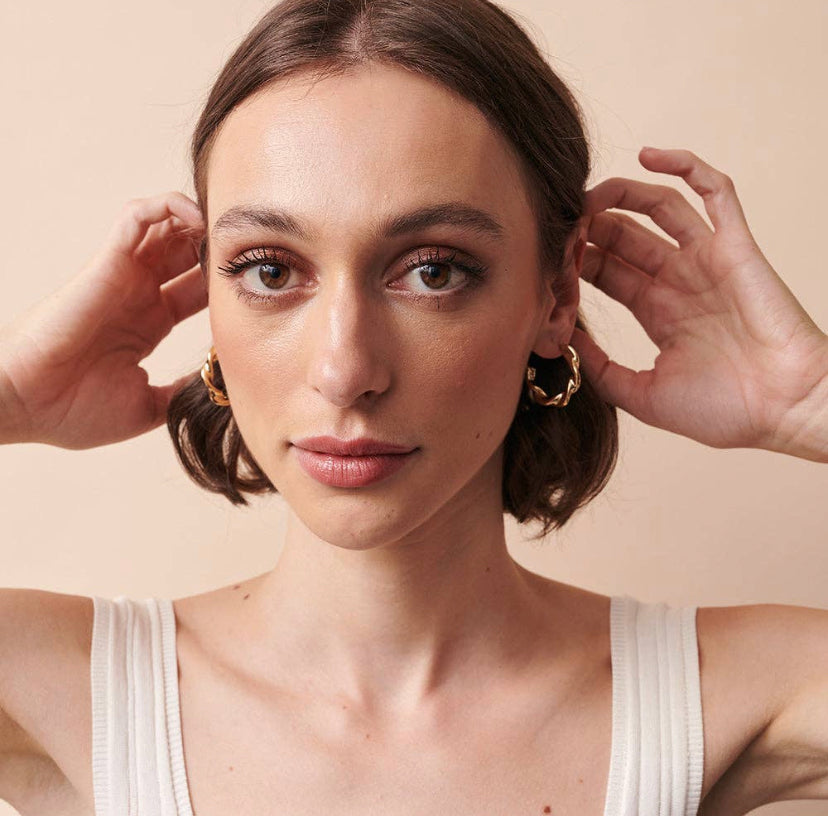 The Chiara Hoops medium are a mid sized hoop in a twisted design. A fashion style to take you from day to night.
