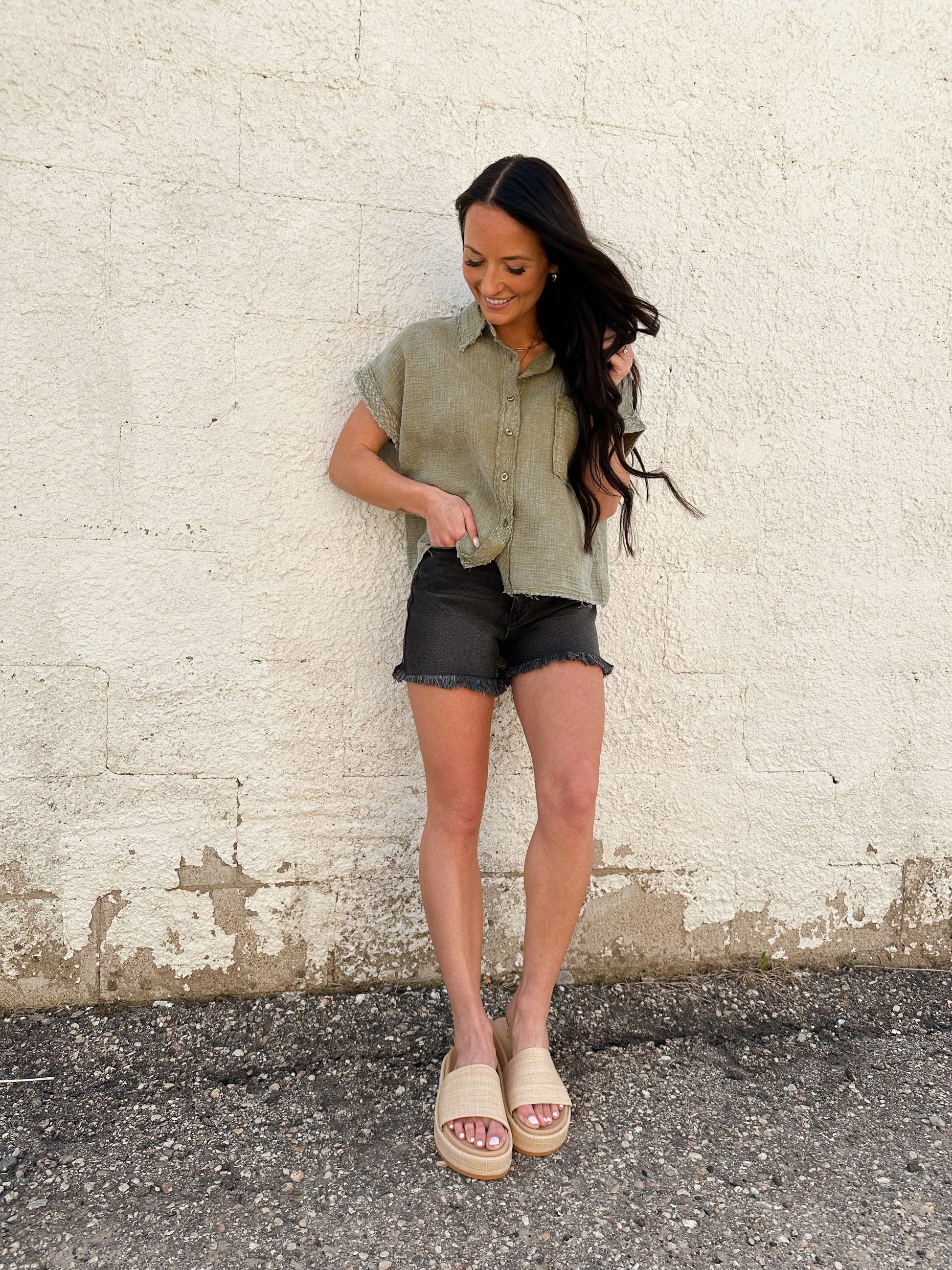 The Kylie Shorts are slightly stretchy with a vintage-inspired shape that hugs you in all the right places. These shorts were dyed with Liquid Indigo, a sustainable ink that cuts back dramatically on water usage. Since 2017, our mill has saved about 25 million gallons of water by using Liquid Indigo. This method also makes the jeans’ color more stable, so they don’t fade as quickly as denim dyed with regular ink. Win, win!