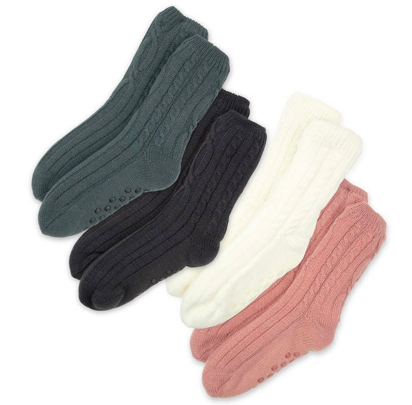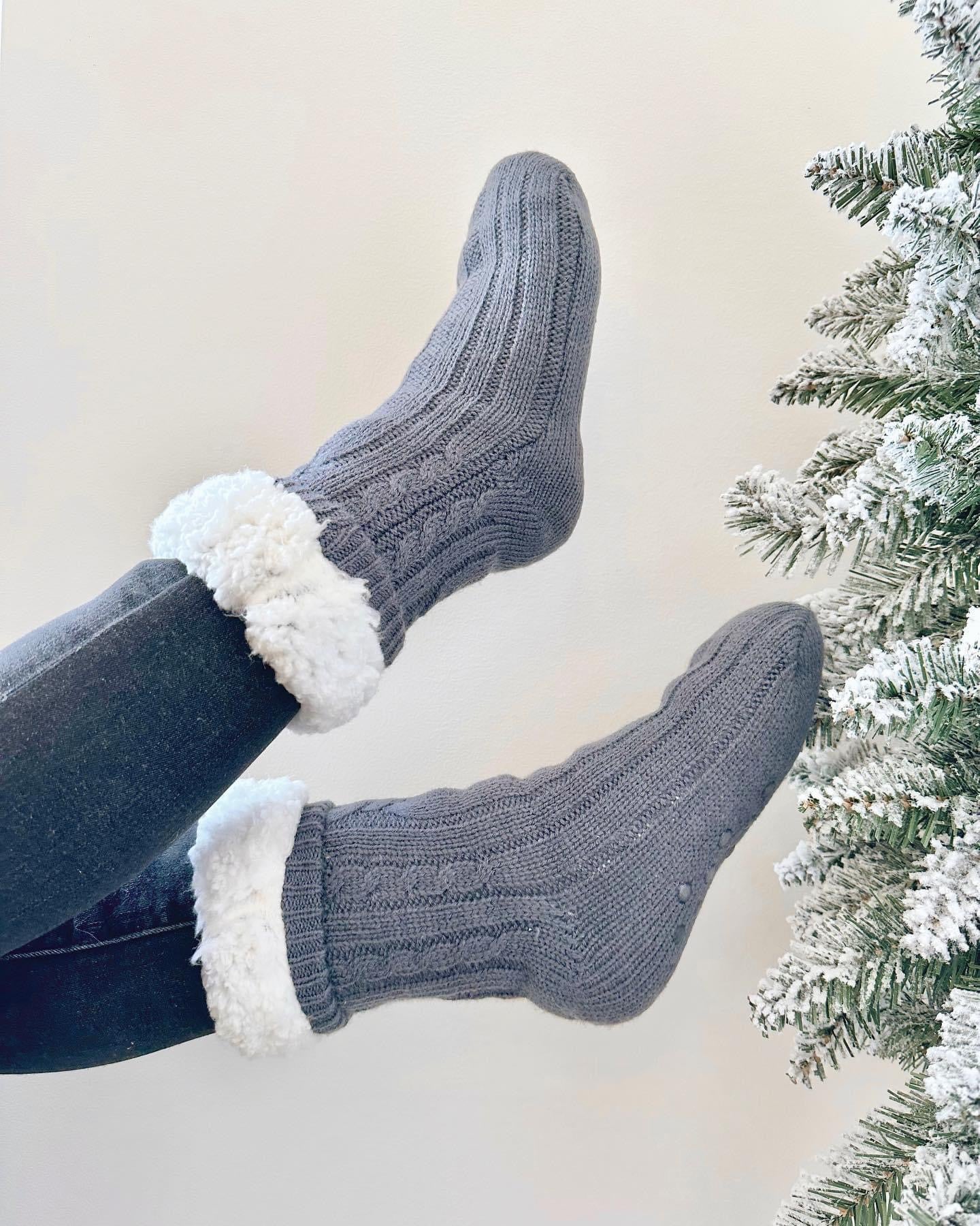 Cozy Sherpa Cable Knit Slipper Socks - 4 Colour Options