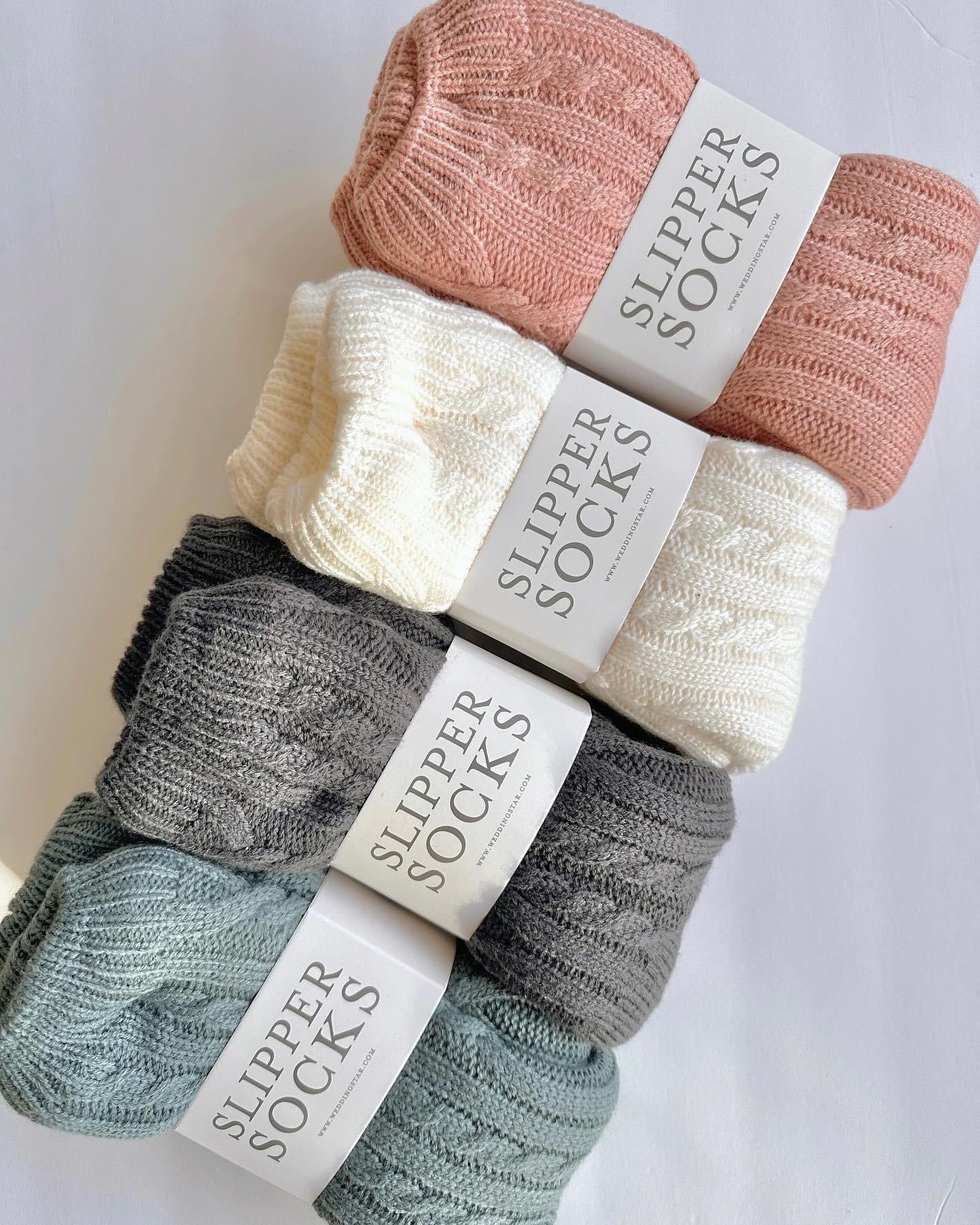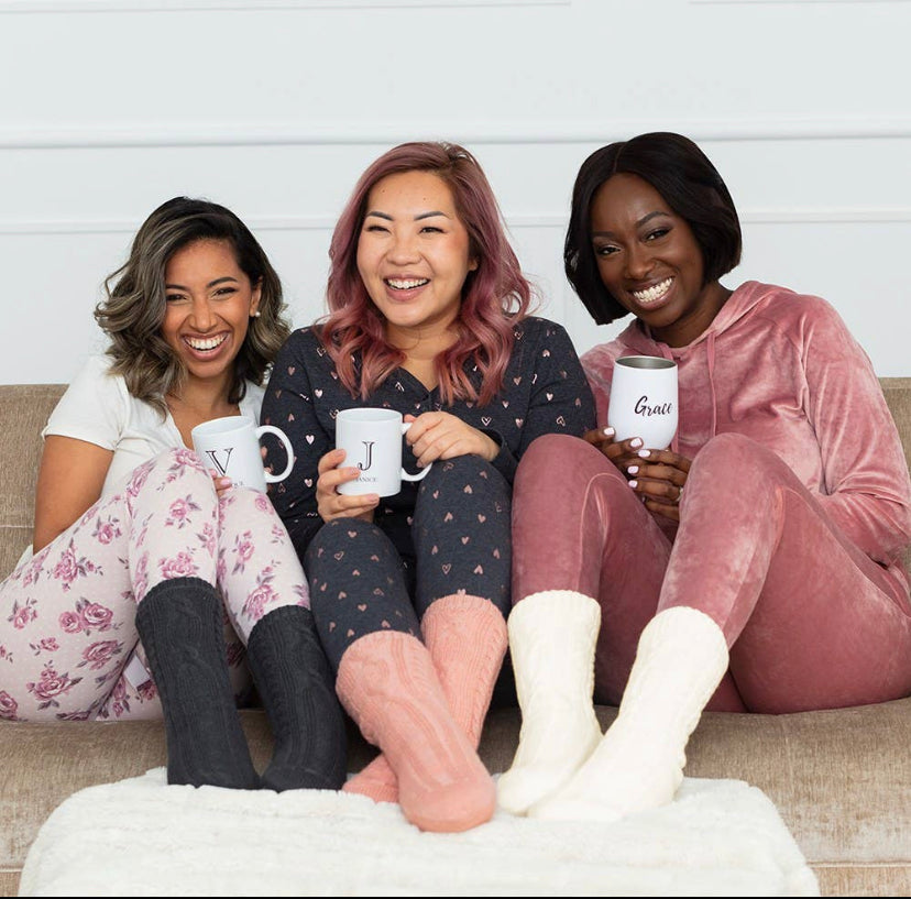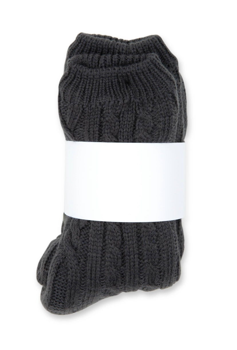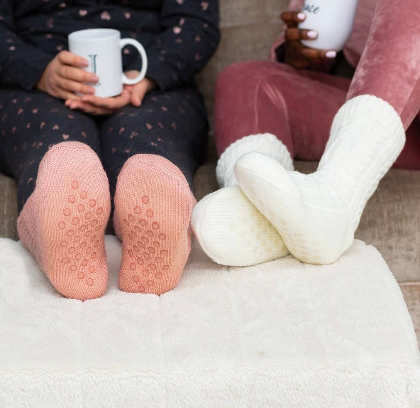 Sure to be your new favorite pair of super comfy socks. Made in the crew style with a decorative cable knit pattern, the slipper socks have the appearance of a classic pair of cabin socks but with a few cozy extras for additional warmth and comfort. The inside of the cable knit reading socks have a fluffy Sherpa lining to keep your feet feeling the coziest with rubber grippers along the bottom of each sock for increased stability when walking. Thick thermal cable knit on the outside and fuzzy on the inside, the unique reading socks make the perfect footwear to lounge in and keep your feet warm through the winter months. Available in your choice of charcoal grey, ivory, pink, or slate blue, they’re an everyday sock style that work as a bridesmaid gift, teacher appreciation present, or an excellent replacement for your standard sock gift at Christmas. 10" (L of foot) x 4" (W of foot) x 8" (H up ankle) Fits up to a size 10 US women's shoe size