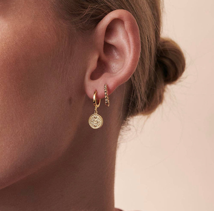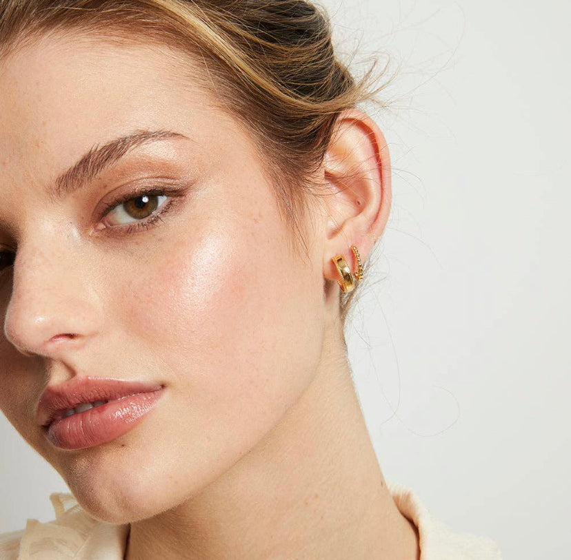 The Elisha Sleepers are a small huggie style with ball detail. Made from a brass base with gold/silver plating. A delicate simple sleeper perfect for stacking.