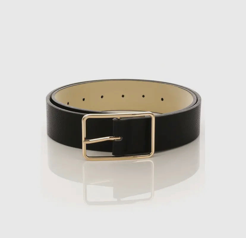 This stunning must have belt that has a beautiful faux leather rectangle cutout buckle fashion belt design.