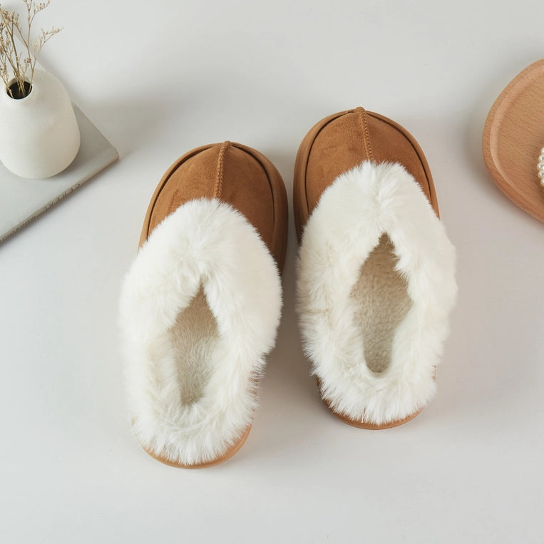 Classic Winter Slippers:Faux suede upper make women's slippers more delicate and breathable along with high-quality and comfort fluffy faux fur collar trim, cozy faux fur plush lining, the house slippers wrap your feet very well, keep your feet nice and toasty whether in socks or bare feet