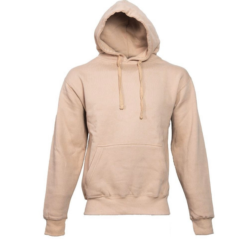 Tan classic pullover sweatshirt featuring a drawstring hoodie and kangaroo pocket on our super soft, medium-weight fleece.