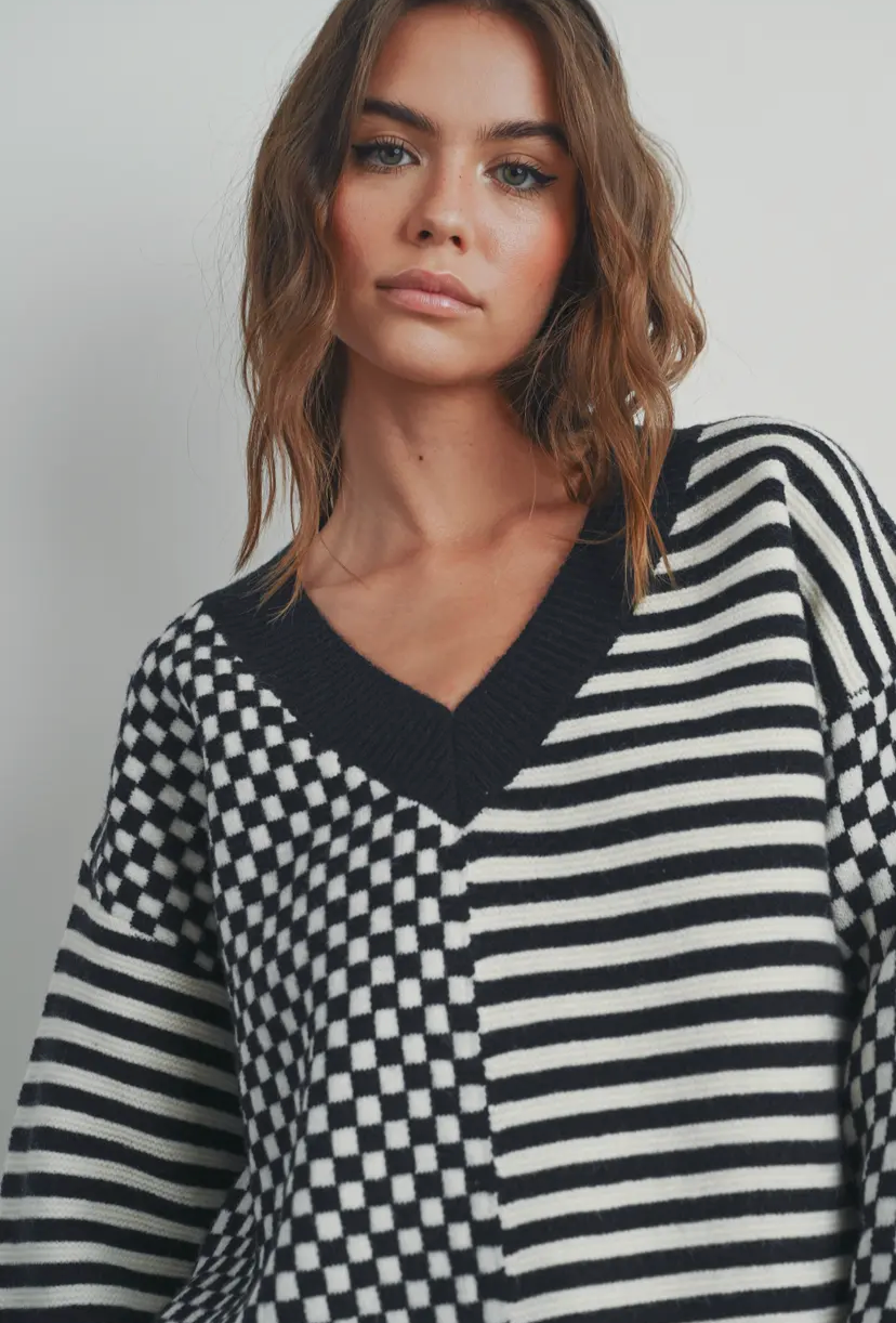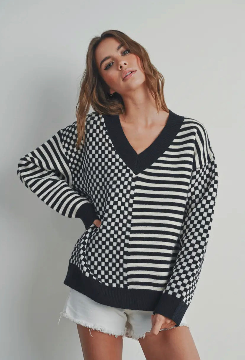 The Frenchy Checker Pattern Drop Shoulder Sweater is a chic and cozy knitwear piece that blends comfort with style effortlessly. Made from high-quality, soft materials, this sweater features a classic checkerboard pattern in a French-inspired design. With its relaxed drop-shoulder fit, it offers a casual yet fashionable look suitable for various occasions. This sweater is perfect for staying warm and on-trend during cooler seasons while adding a touch of sophistication to your outfit.