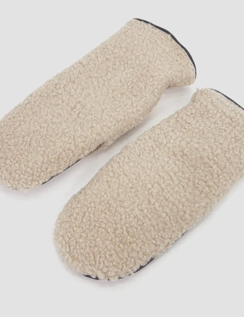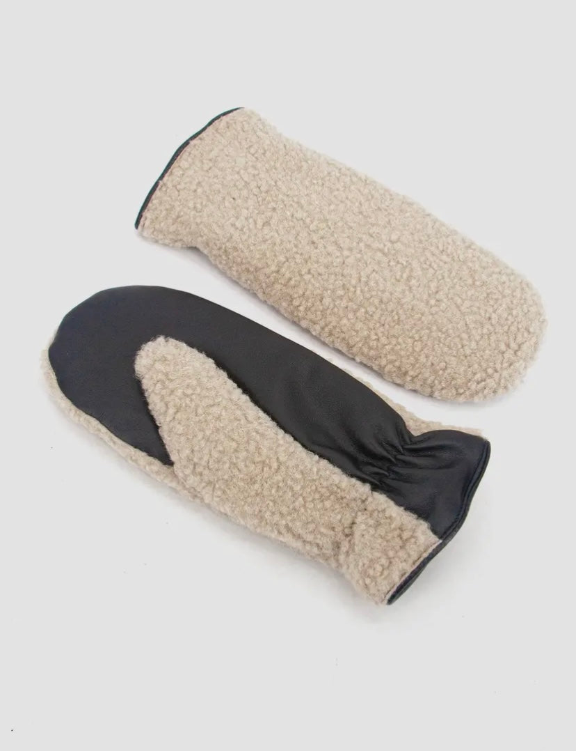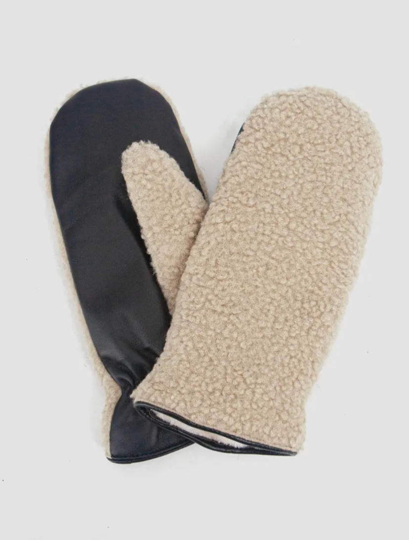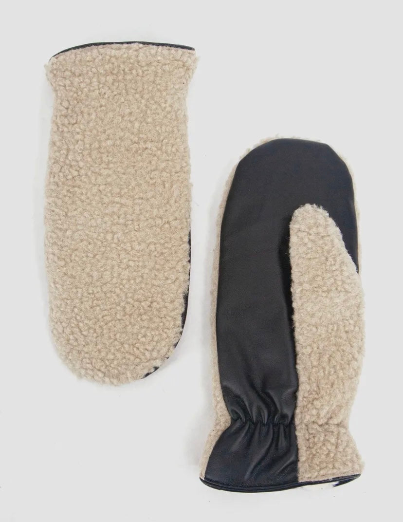 Duo Sherpa/Leather Mitts | Cream/Black