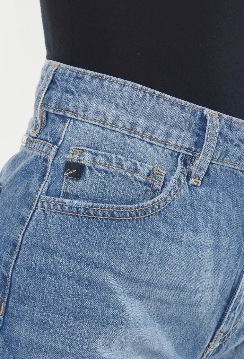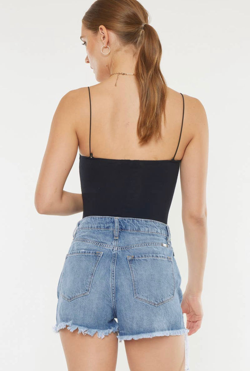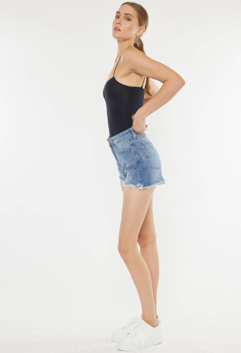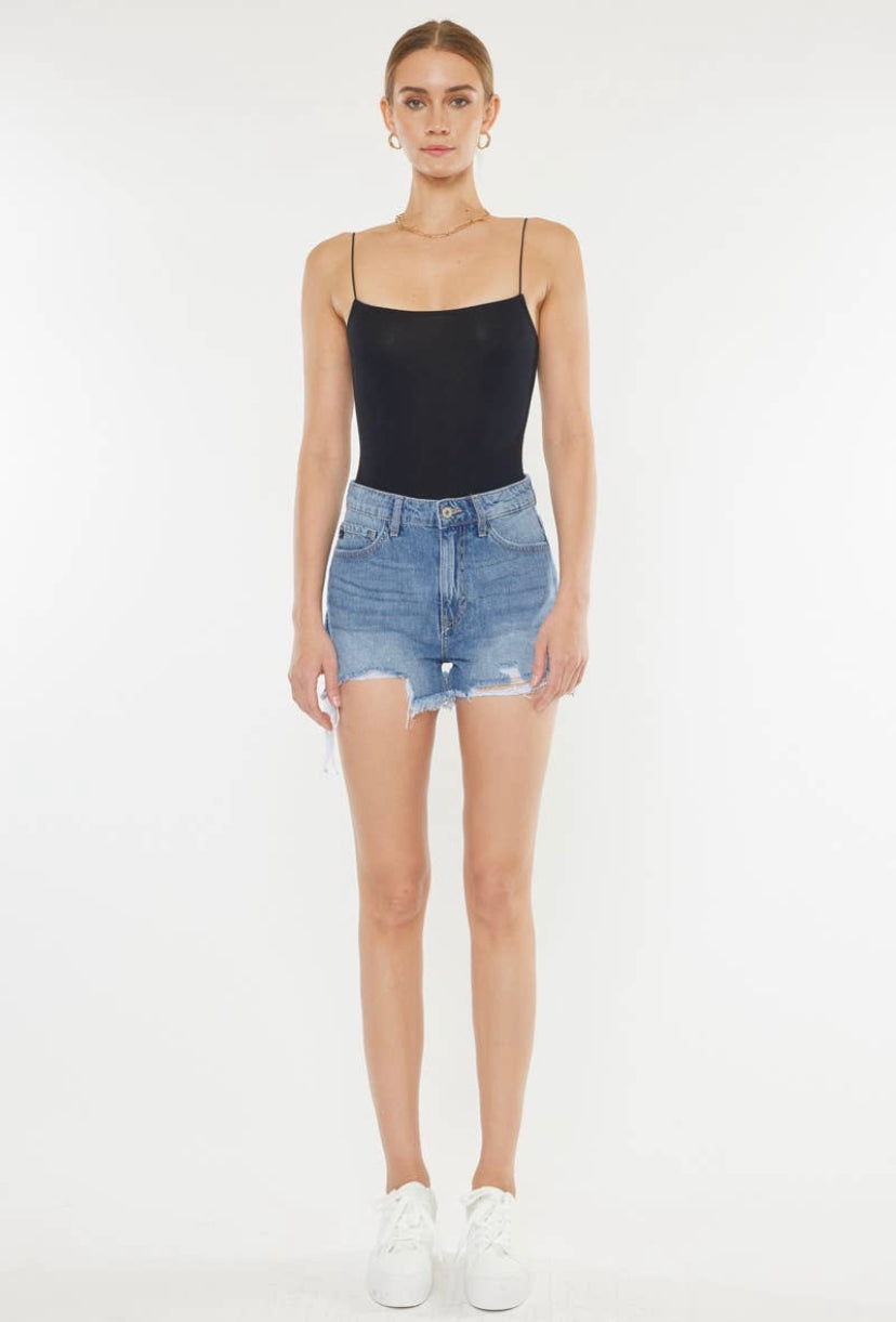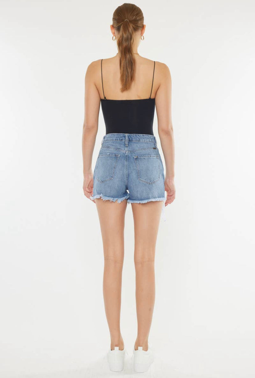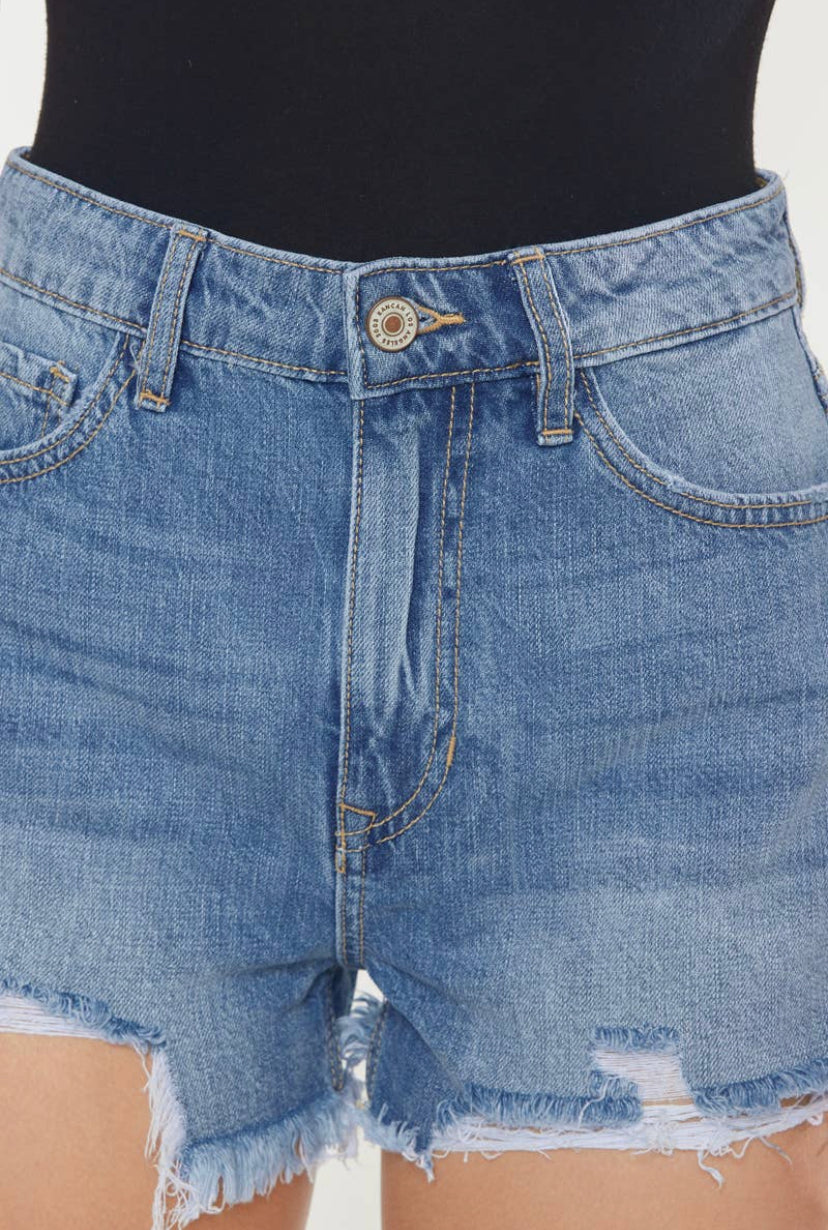 KAN CAN - Harper High Rise Distressed Short Mid Blue