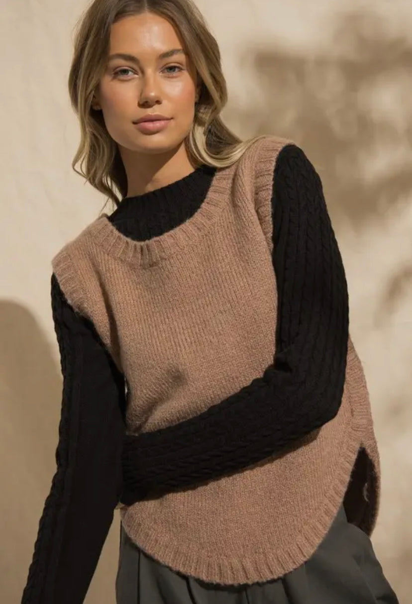 Isabel Round Hem Sweater Top -Round Hem Sweater Vest -Scoop Neck -Loose Fit Length 20 1/4 Chest 18 7/8