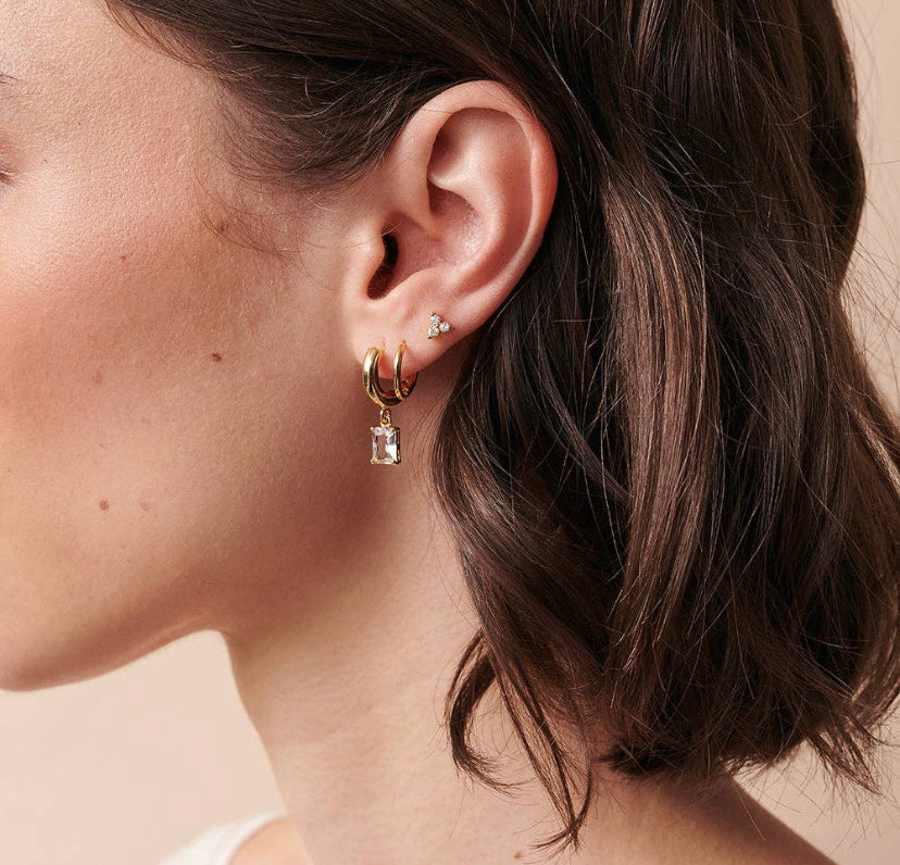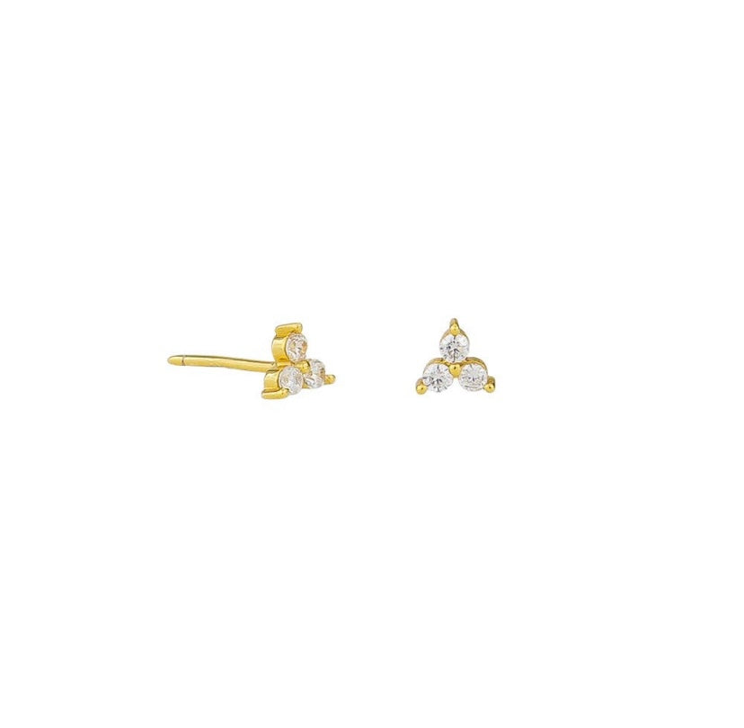 The Janie Studs are a small earrings style with three crystal stones. A dainty style perfect for everyday. MATERIAL AND DIMENSIONS: - Brass base and thick gold plating - Swarovski crystal - Width 0.5 cm