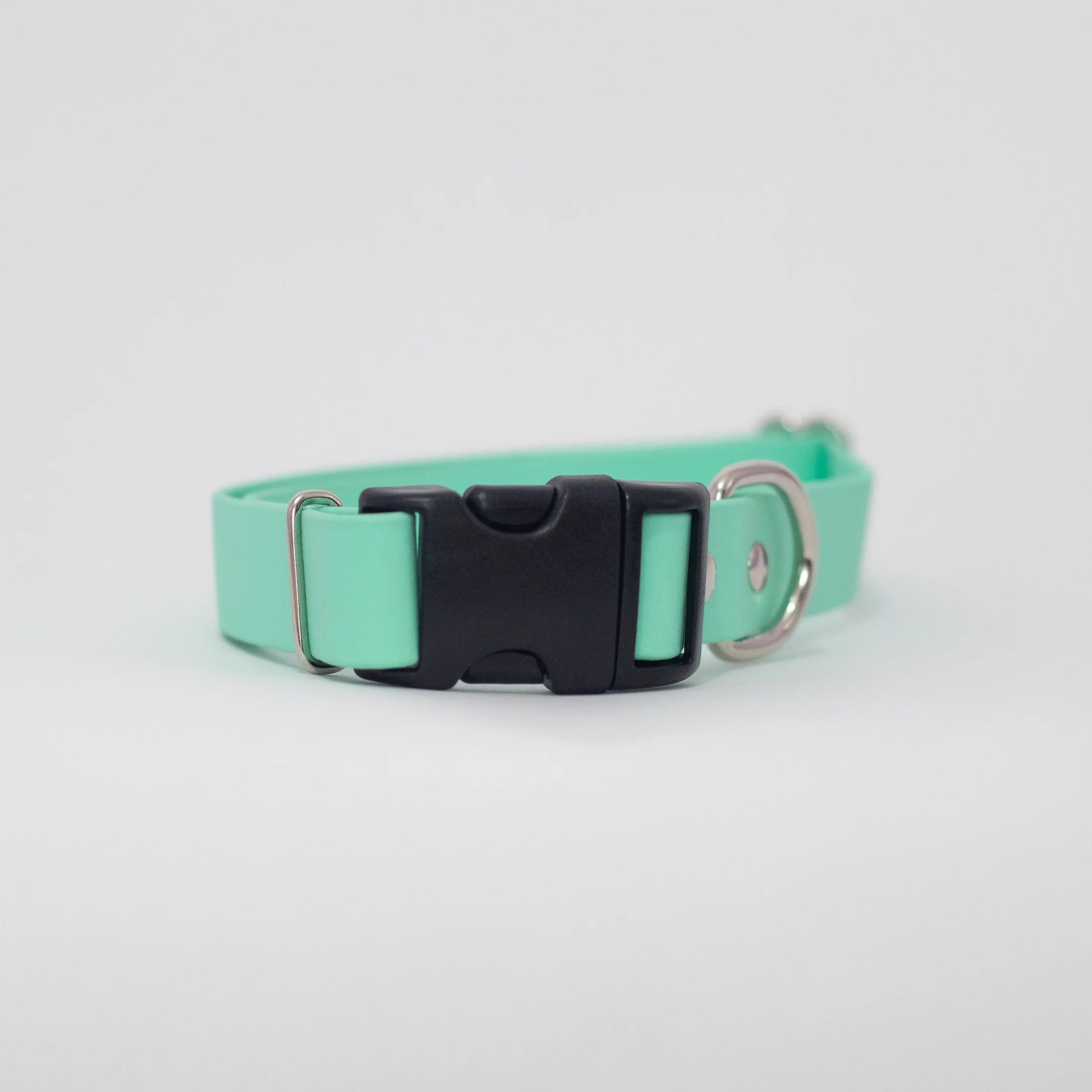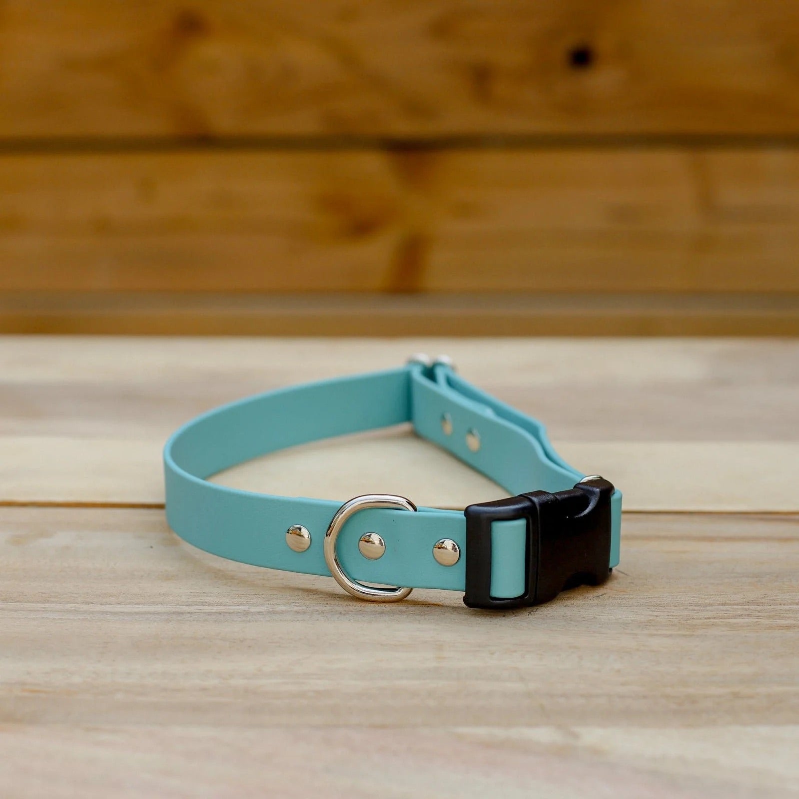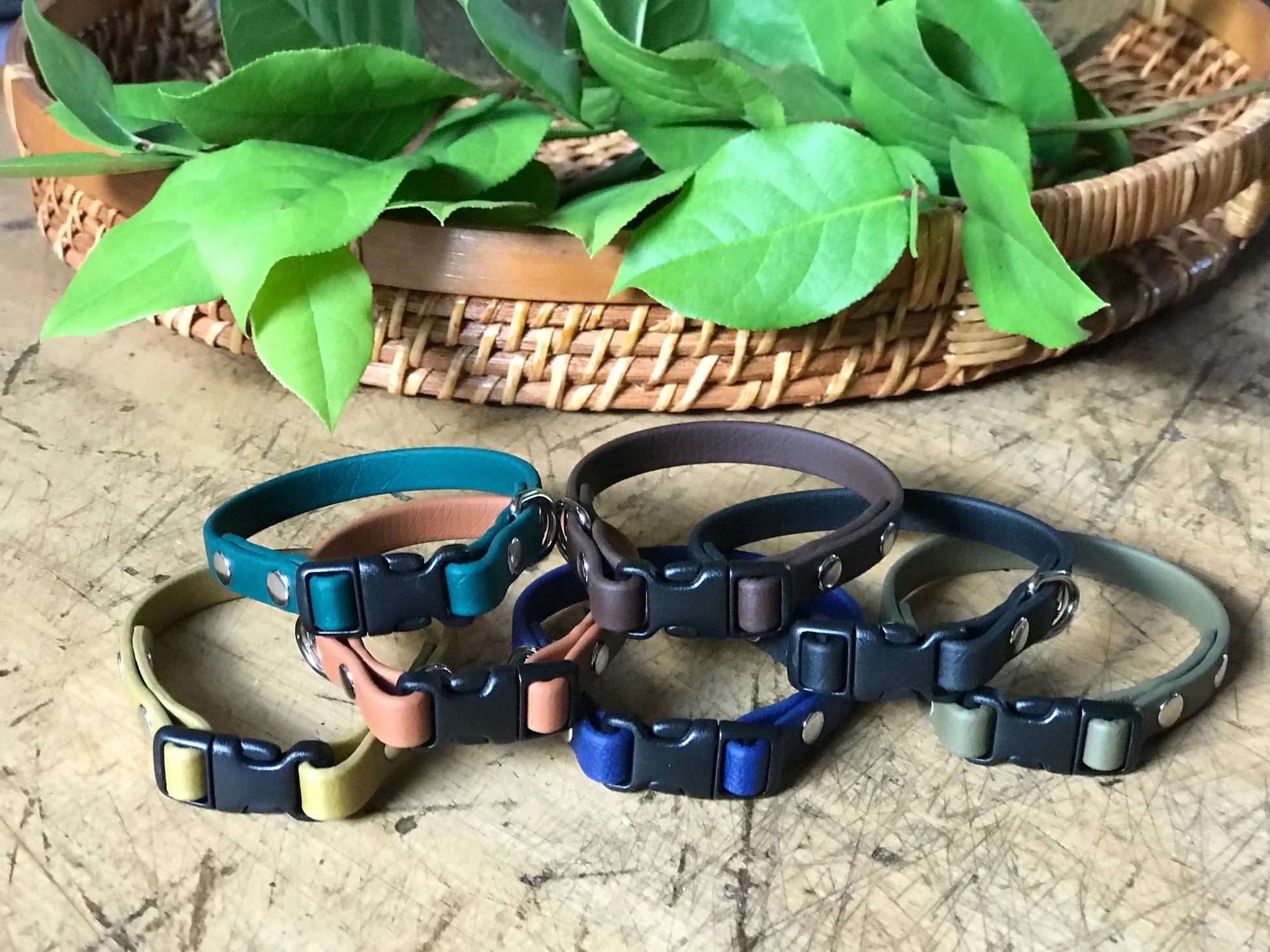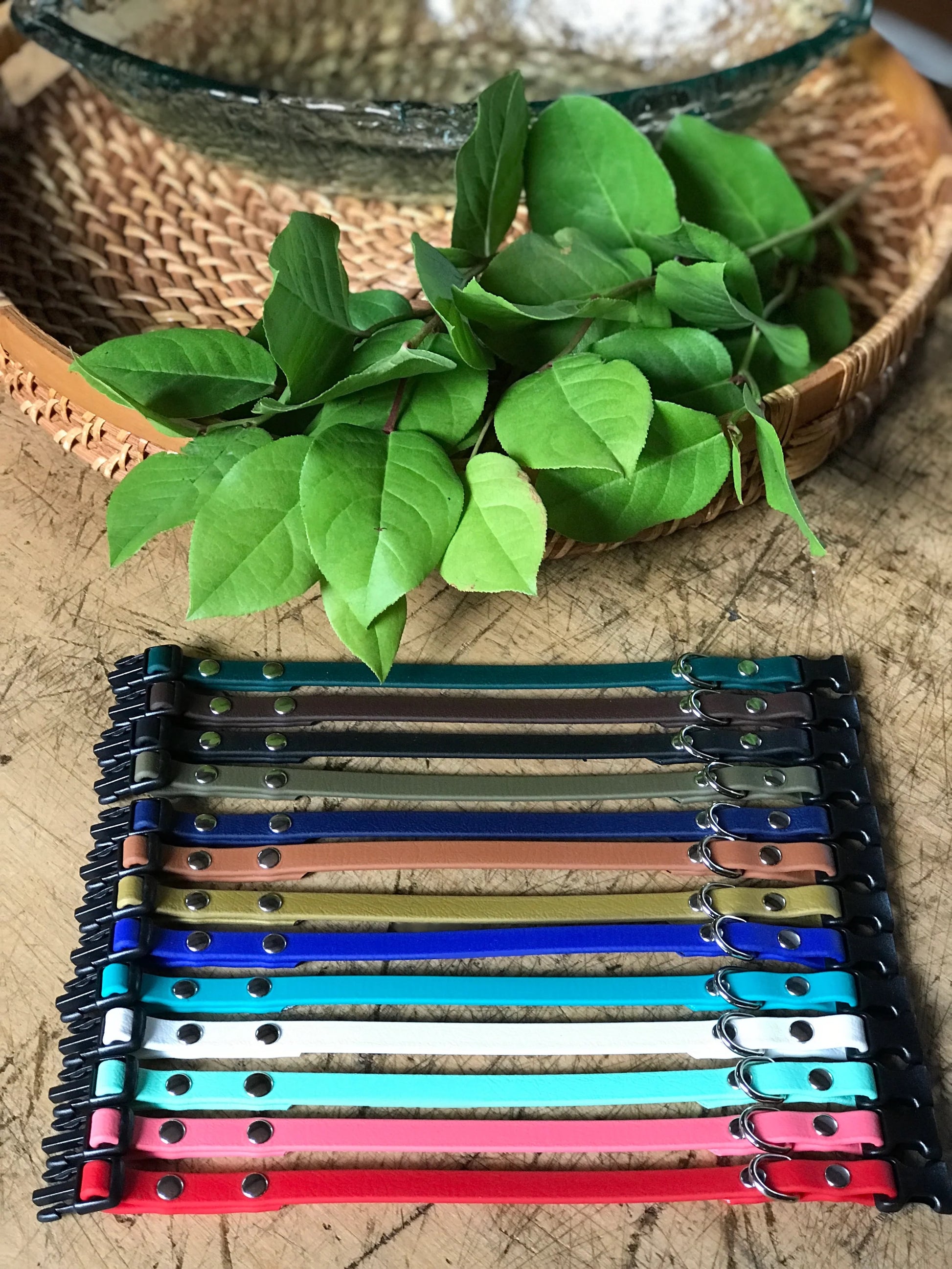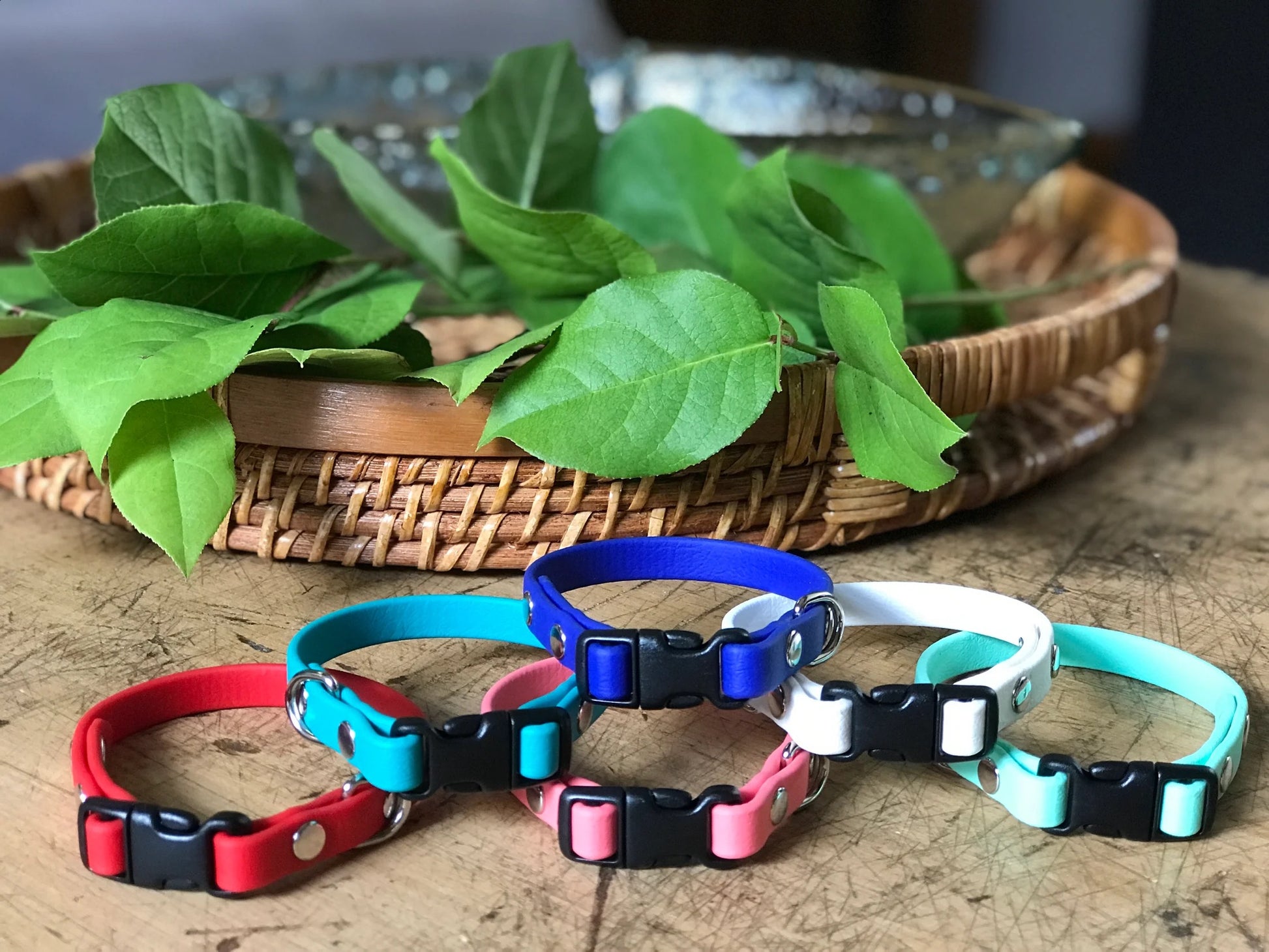 Jema + Jaxx's quick release collar in 3/8" is perfect for all the tiny pups! These little Biothane collars are available in 10" circumference. The quick release buckle is easy to snap closed and to open.
