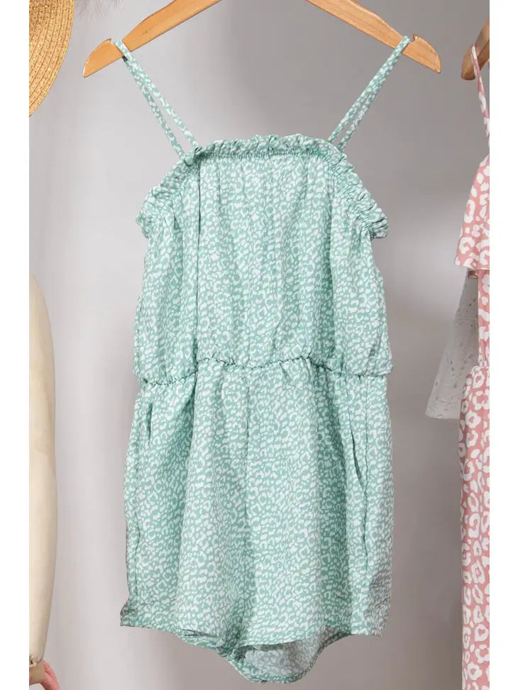 - Straight neck line w/ ruffle detail - Elastic at waist - Side pockets - Wide shorts