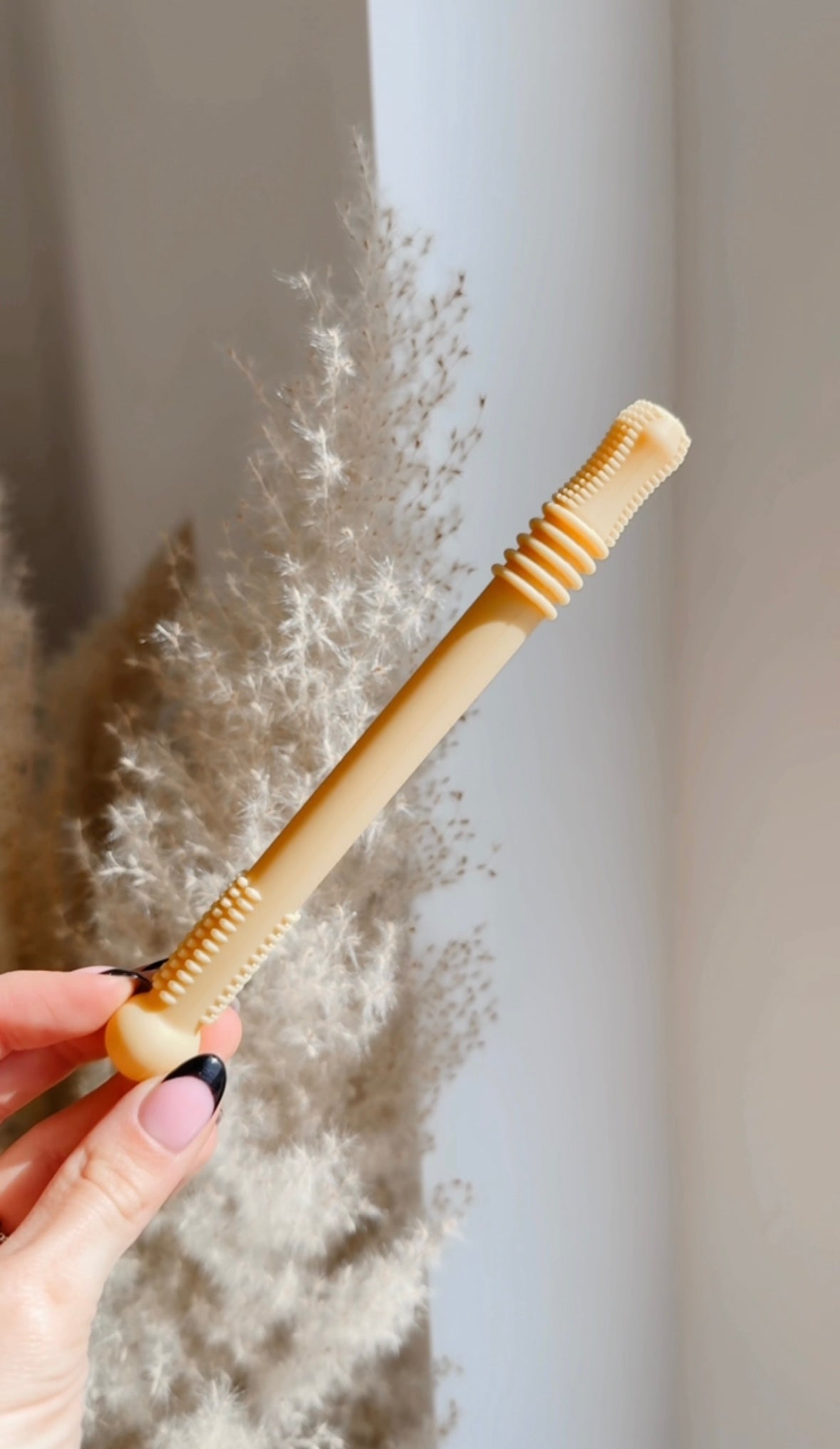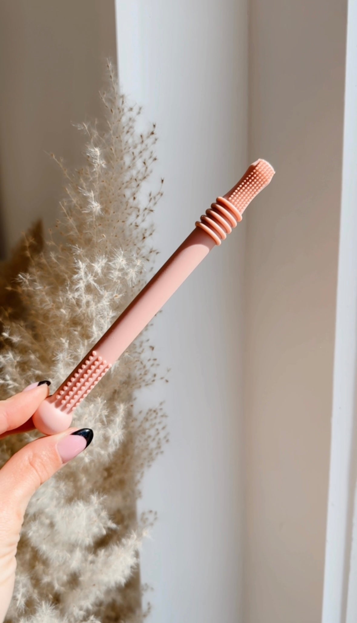 The most practical teether there is! Meet the Little Kinfolk Magic Teething Wand! They are textured with 5 different textures. Textures are perfect for all teether stages, first tooth thru back molars. Magic Teething Wand Size is 8 inches. Also with every purchase you get a custom case for your wand. Keep them nice and clean between chews! Case comes in Pink, Blue, Oat and Seafoam.