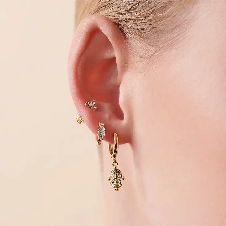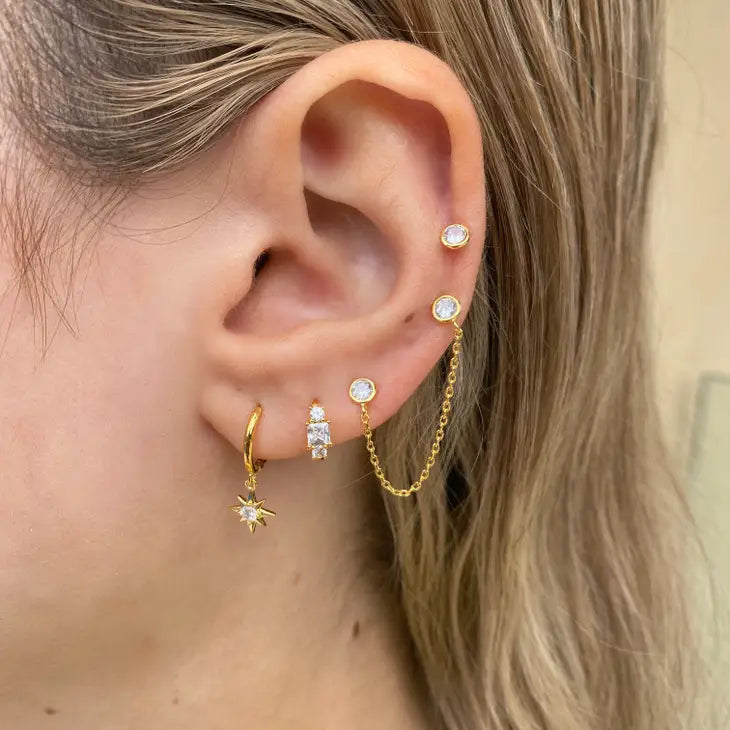 DESCRIPTION: The Liz Sleepers are a huggie style sleeper featuring Swarovski crystals. perfect for everyday glam or nights out.