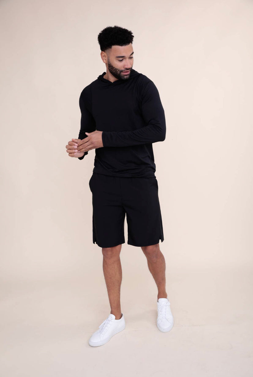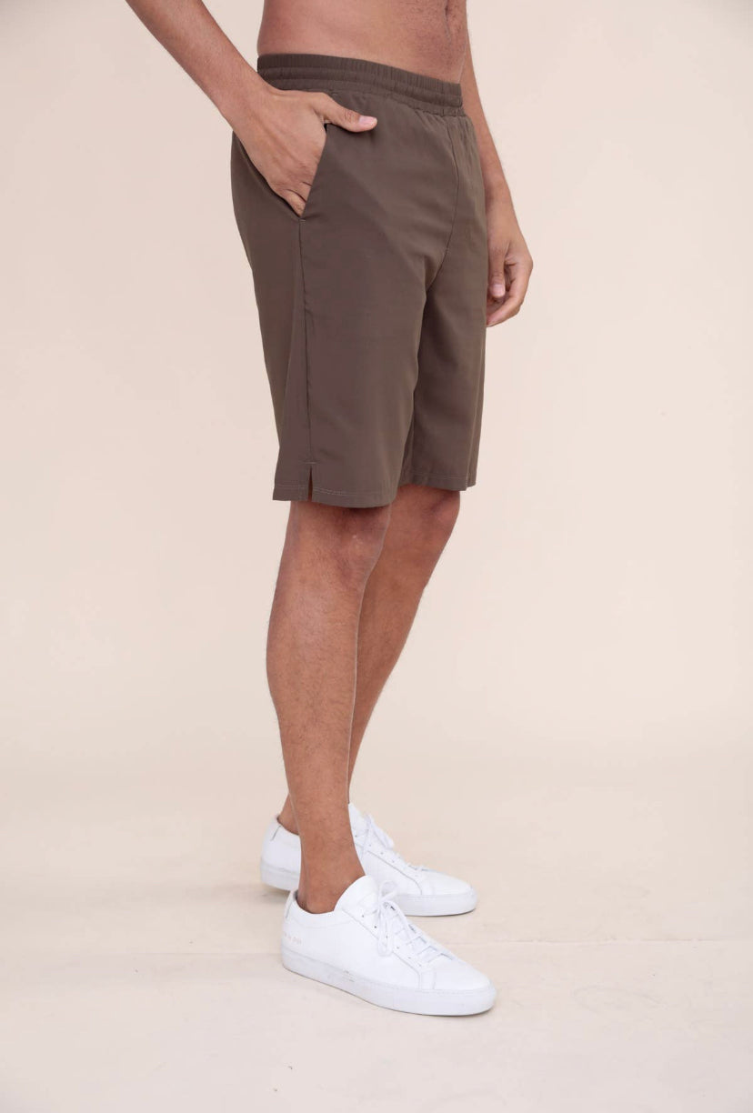 These eco-friendly mens shorts were constructed from 100% recycled polyester and feature a perforated inner lining for extra comfort and security, side pockets, a zippered small pocket, elasticized waistband with inner drawstring, and a notch on the side. 100% recycled polyester. Has perforated inner lining.