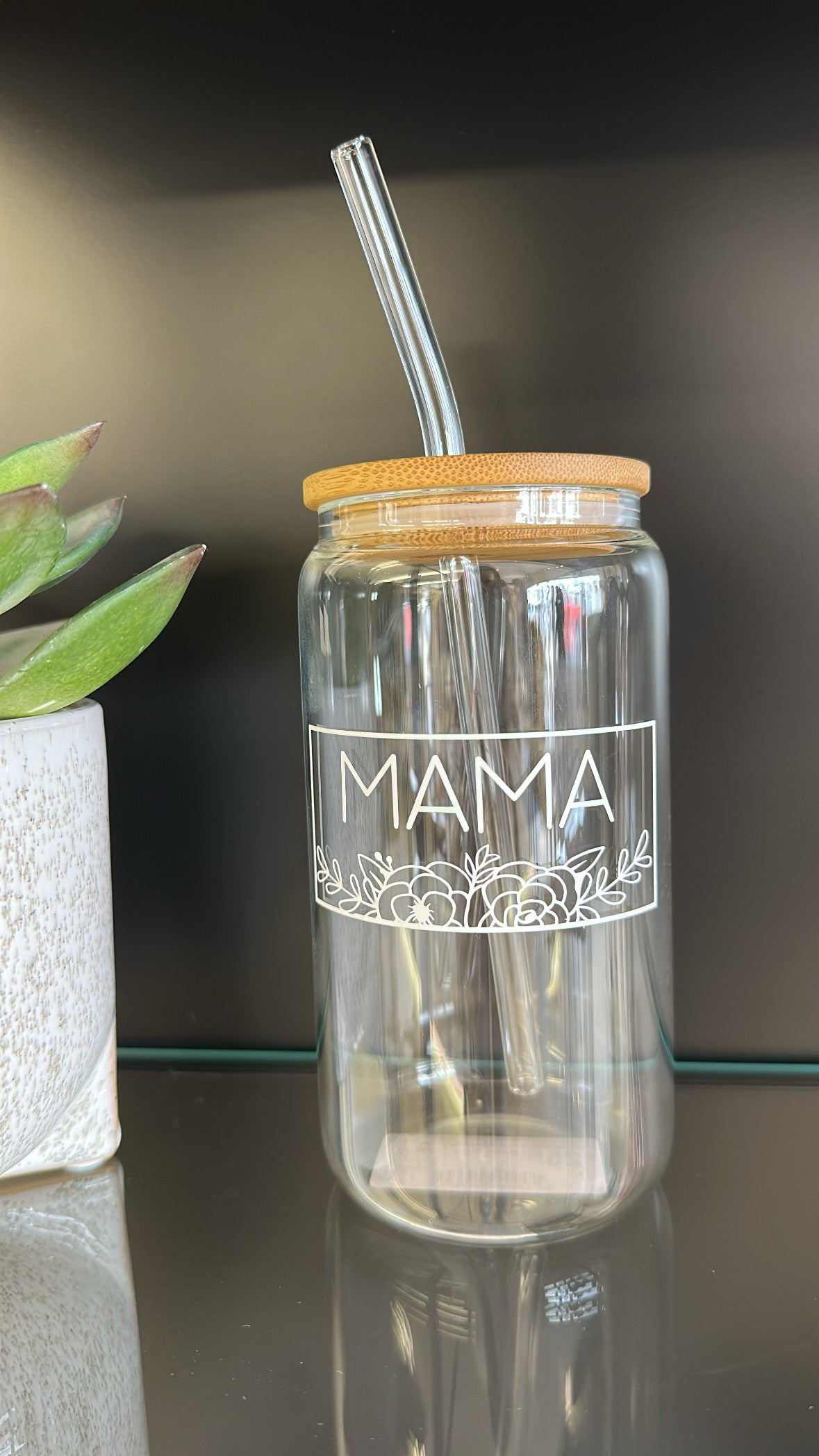MAMA Floral Can Glass
