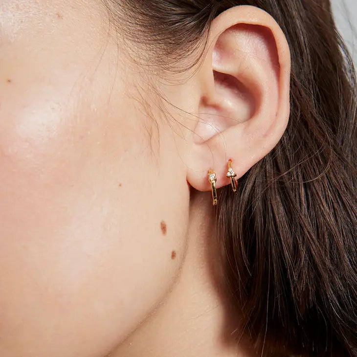 DESCRIPTION: The Mandy Sleepers are a classic hoop shape with small clear crystals. A simple style that is perfect for everyday.