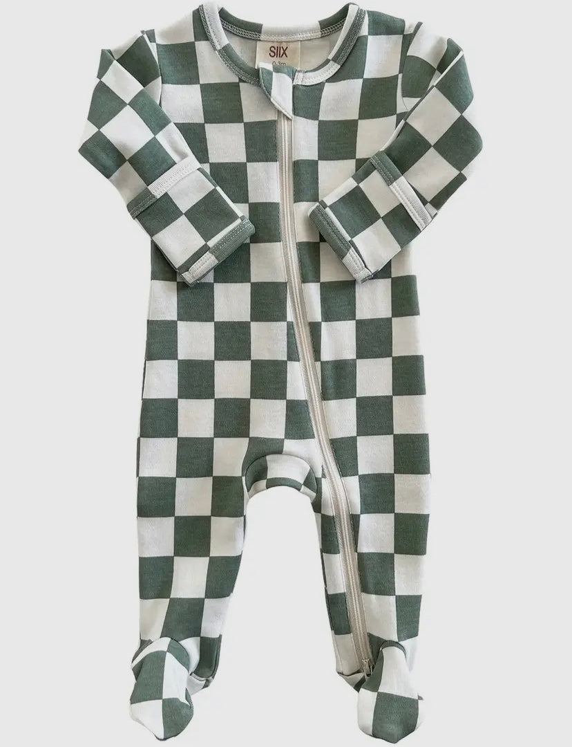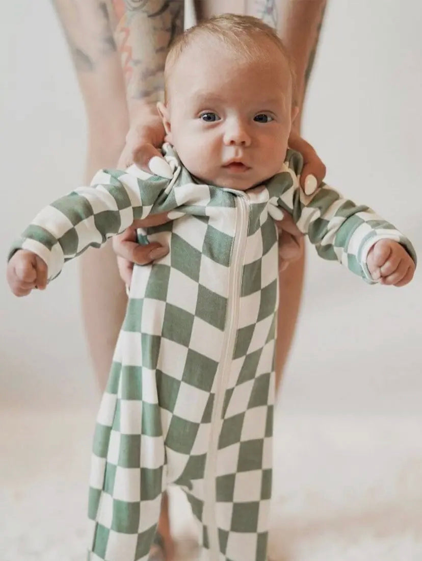 Matcha Milkshake Checkerboard Zip Onesie