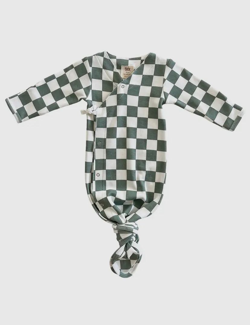 The Organic Kimono Knot Gown is versatile but oh so soft and simple. The kimono detail and ability to adjust the sizing by knotting the bottom make this gown perfect for birth announcement photos for newborns. At home, diaper changes and keeping baby’s legs and feet warm have never been easier (or more adorable). Features side snaps and built-in mitten cuffs