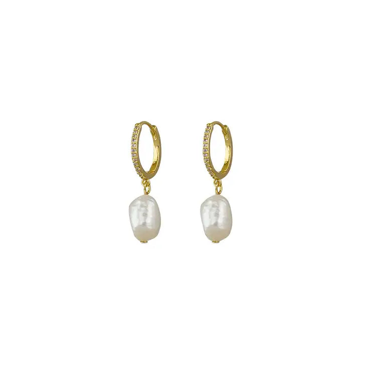 The Montana Earrings feature a swarovski hoop with hanging fresh water pearls. A feminine style that will elevate your weekend outfit.
