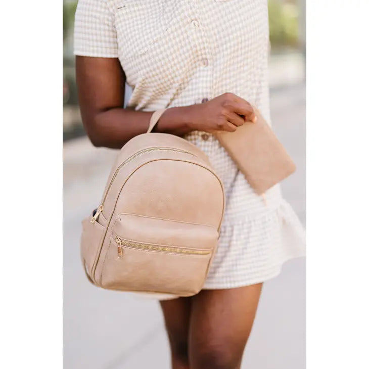 Made from buttery-soft vegan leather and complete with a matching wallet, the Morgan is sure to be your new on-the-go companion. Seven pockets and glossy gold hardware round out this wallet and backpack duo's functional and fashionable appeal.