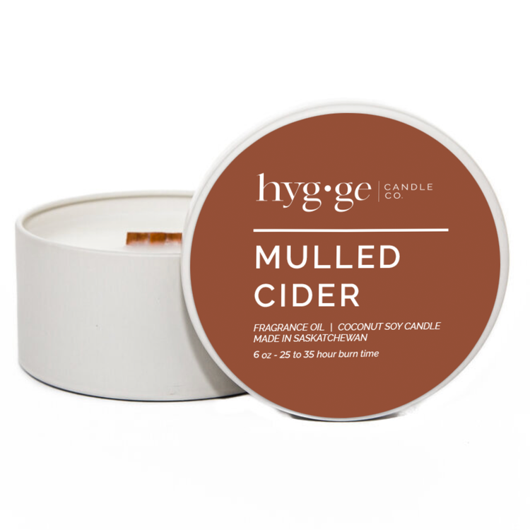 A true Canadian tradition- Frosty sleigh rides and steaming cider. Warm up with Hygge’s Mulled Cider with a side of a crackling wood wick. Our candle has scent notes of sweet orange, mulled cider, cinnamon and clove.