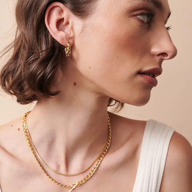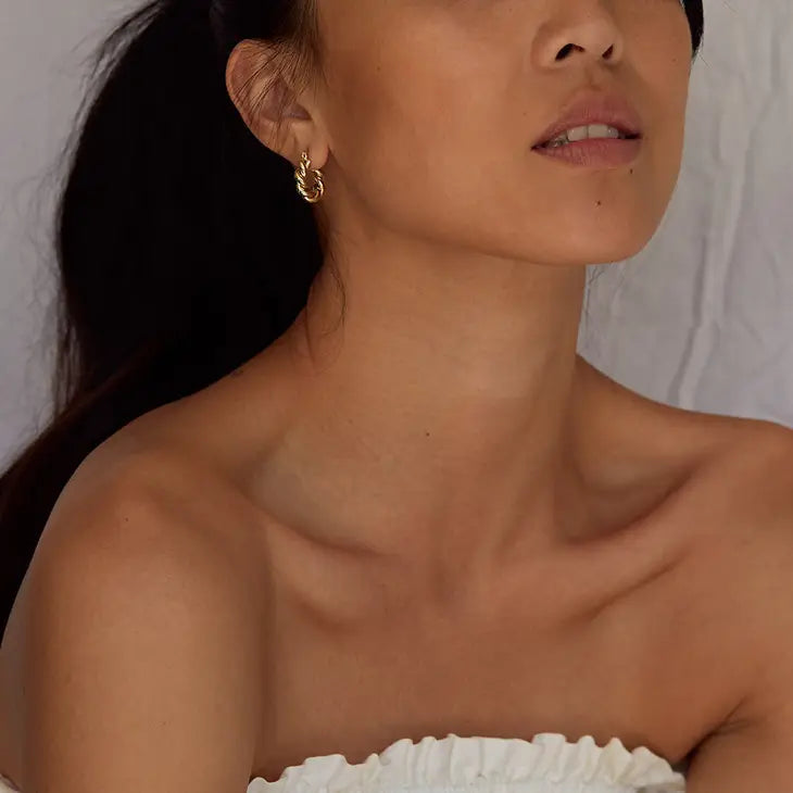 DESCRIPTION: The Nora Hoops are a small sized hoop in a twisted design. An accessory staple that wont date.